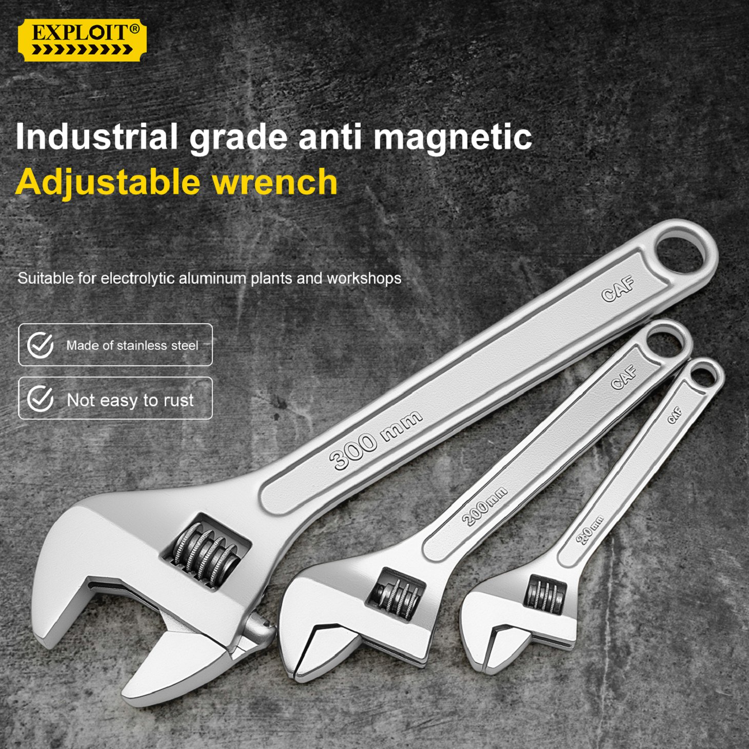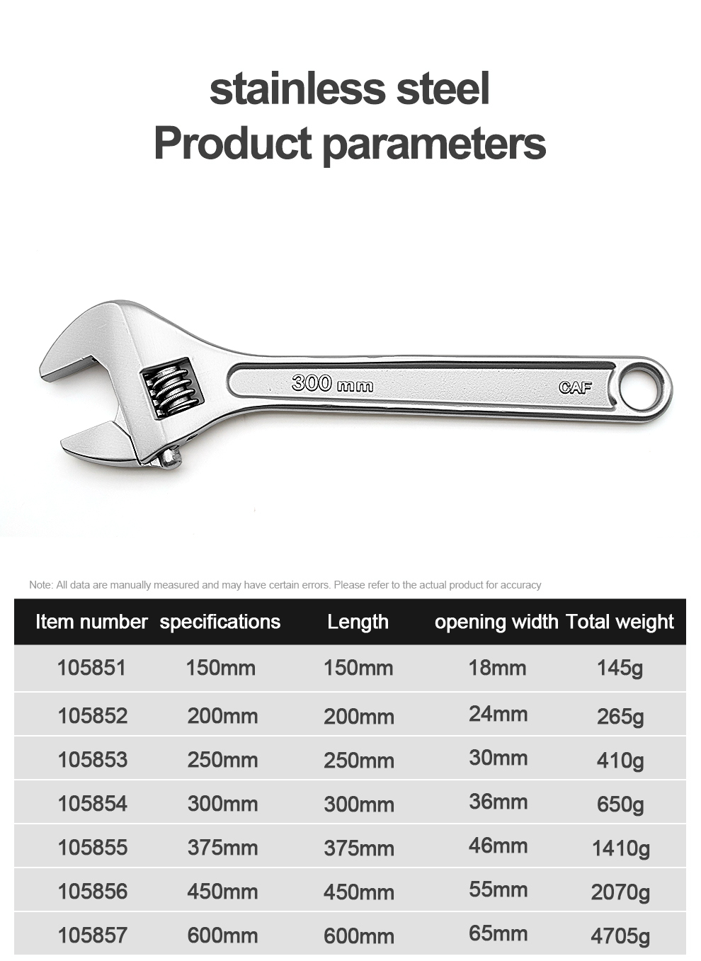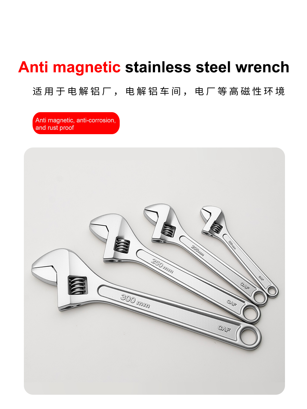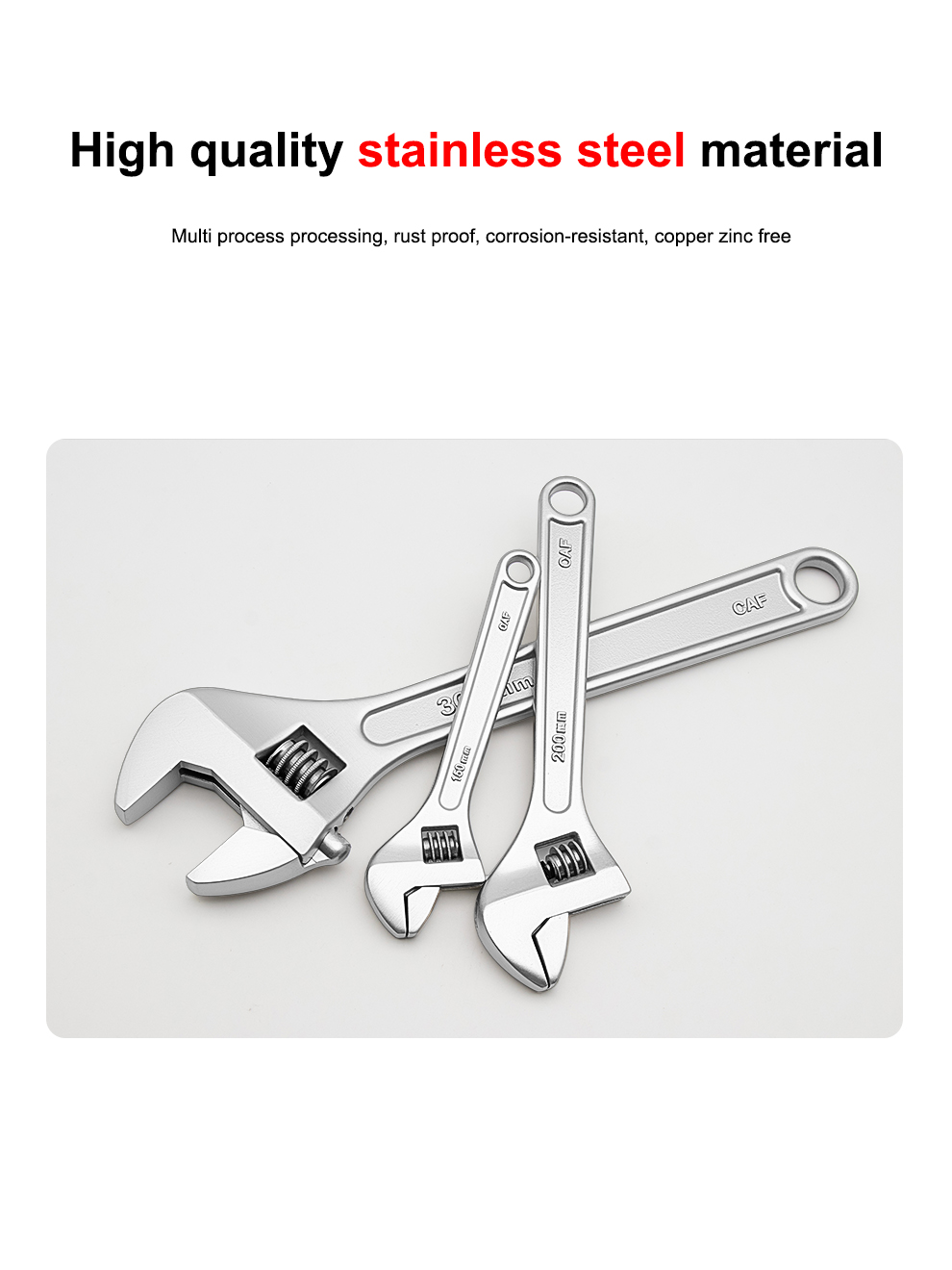 Develop anti magnetic 304 stainless steel adjustable adjustable adjustable wrench 6-24 inch anti rus