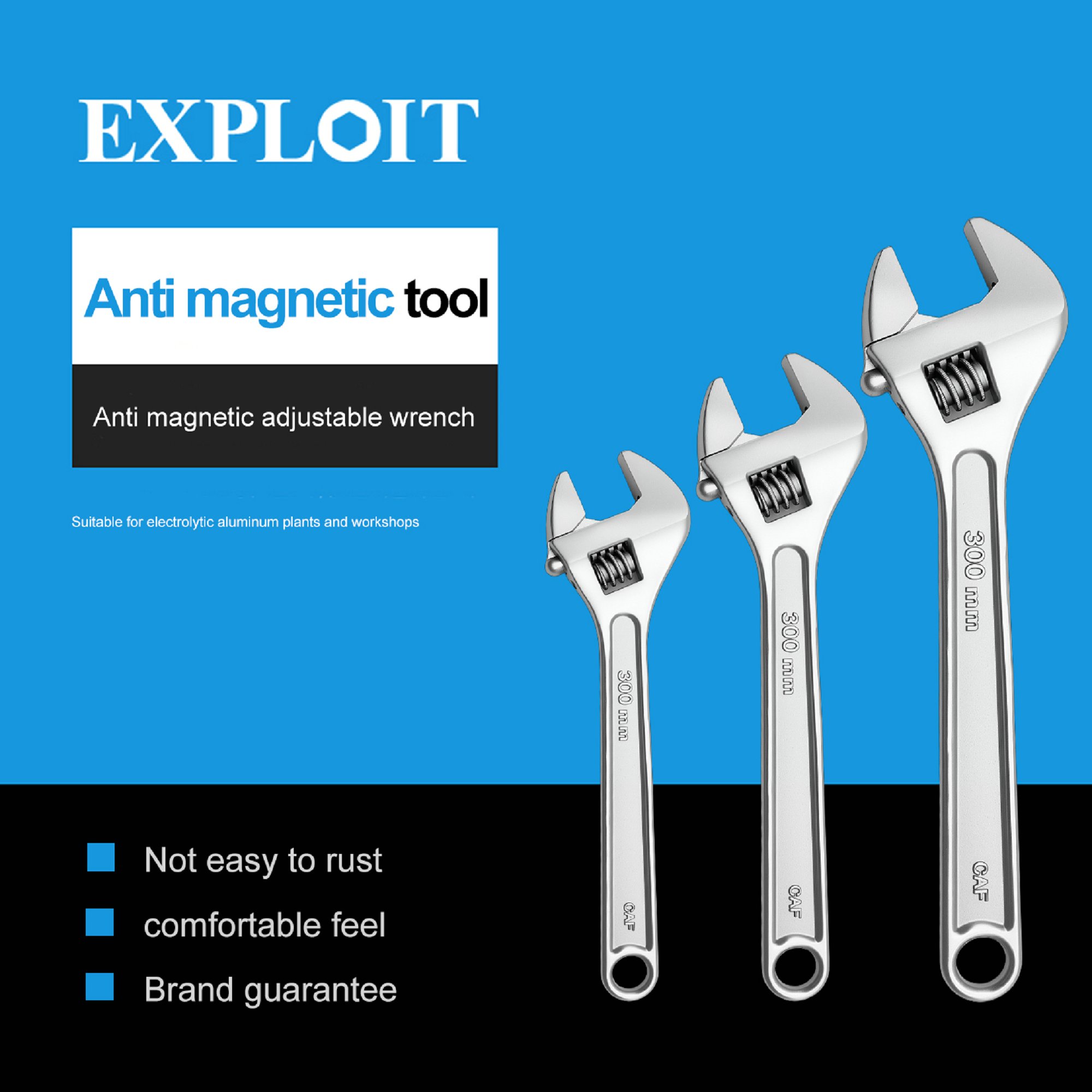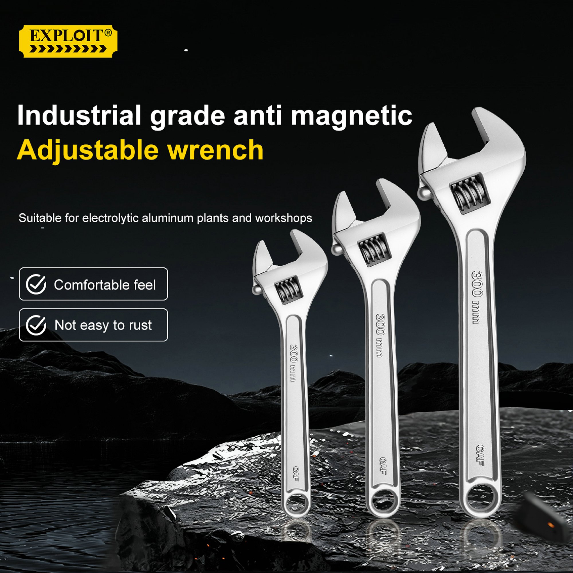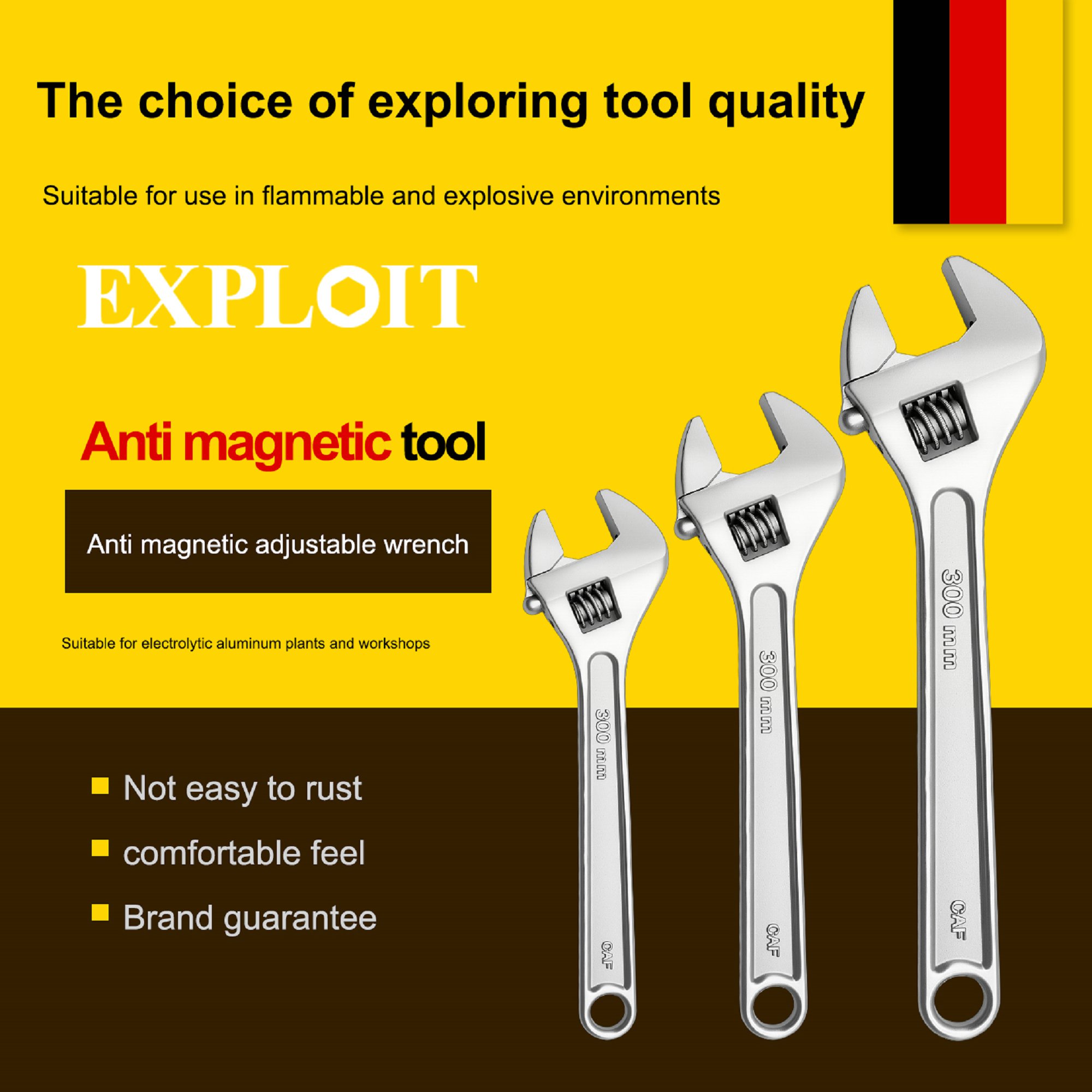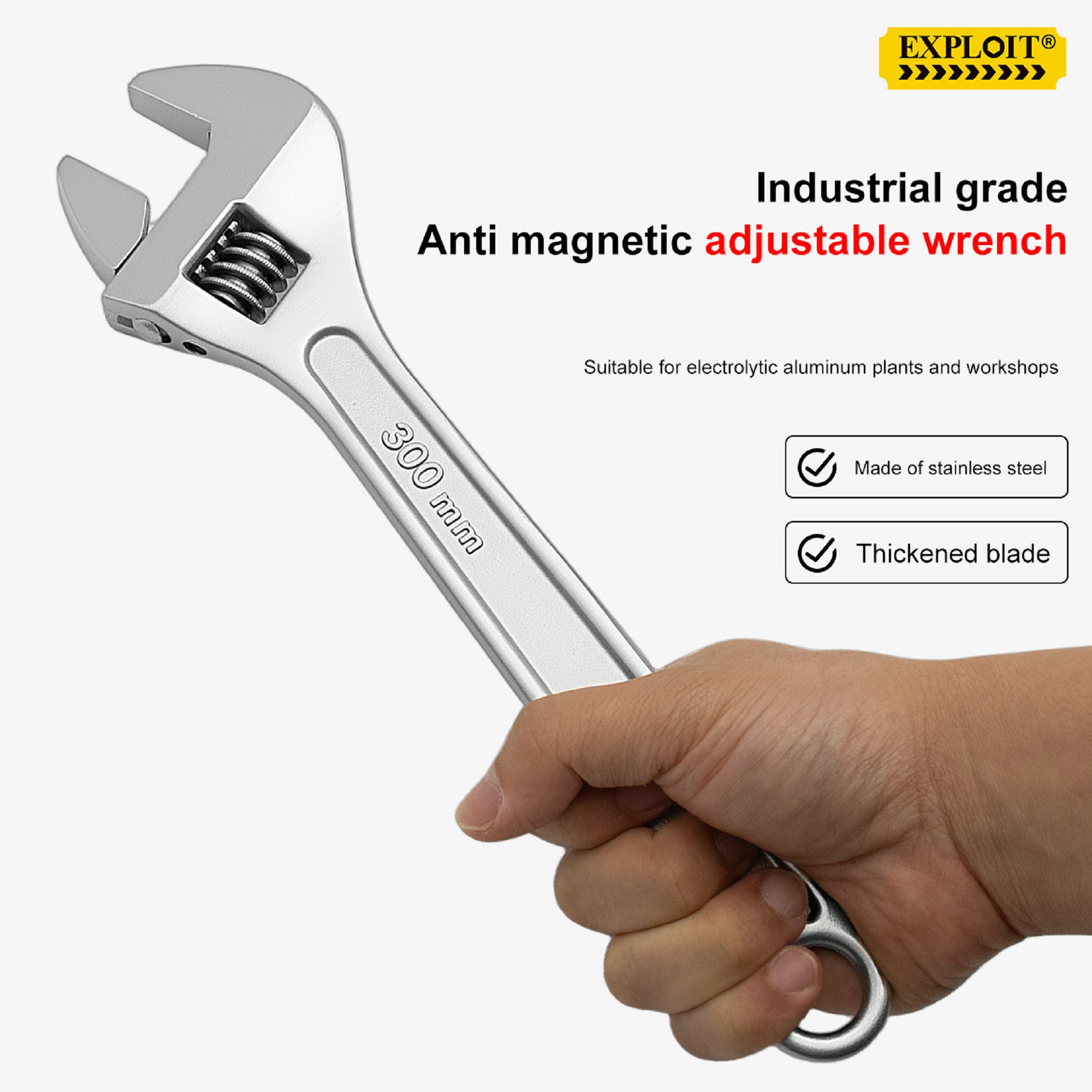 Develop anti magnetic 304 stainless steel adjustable adjustable adjustable wrench 6-24 inch anti rus
