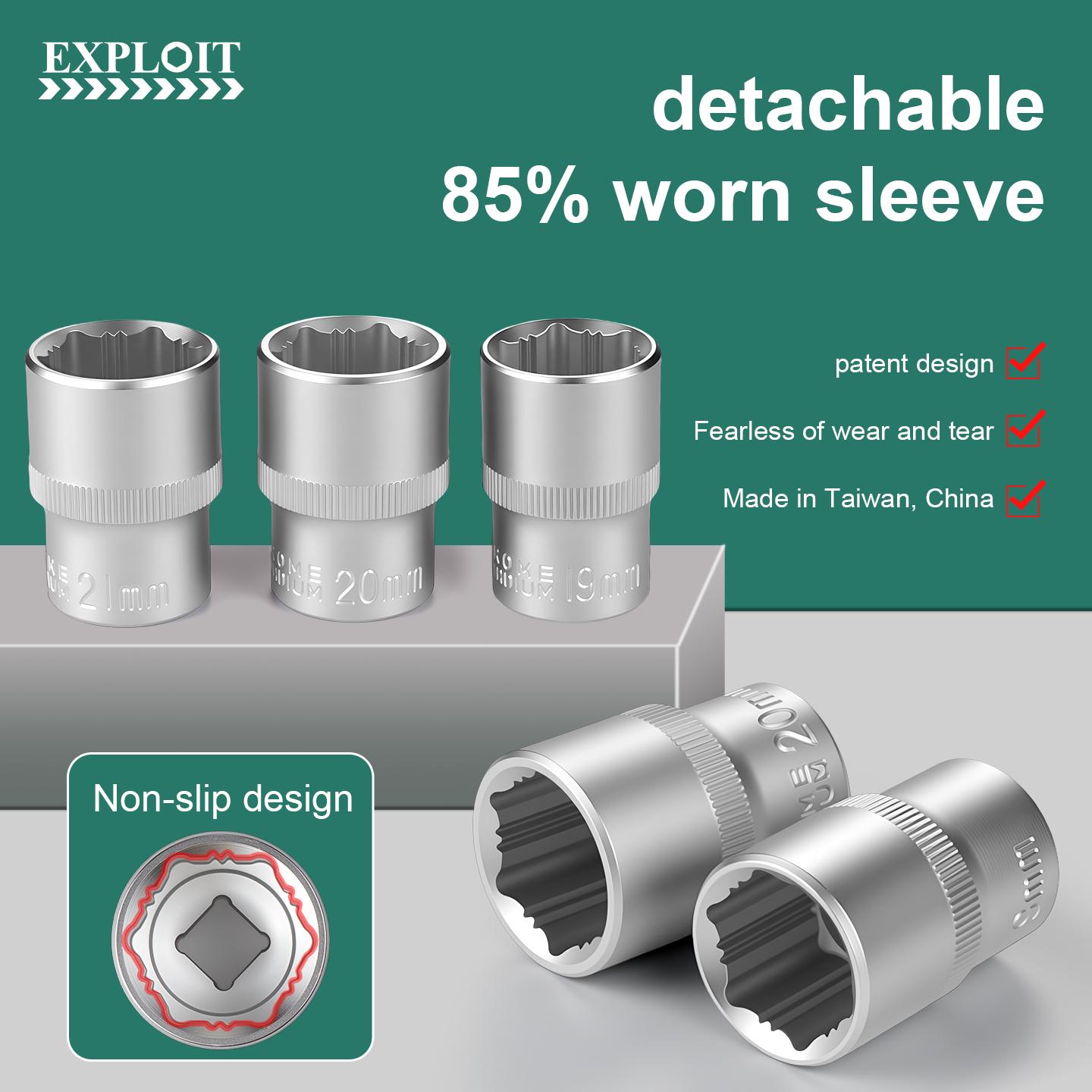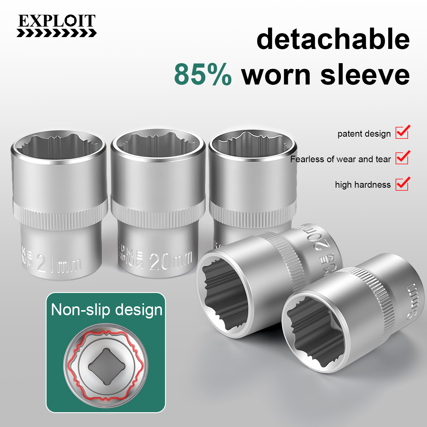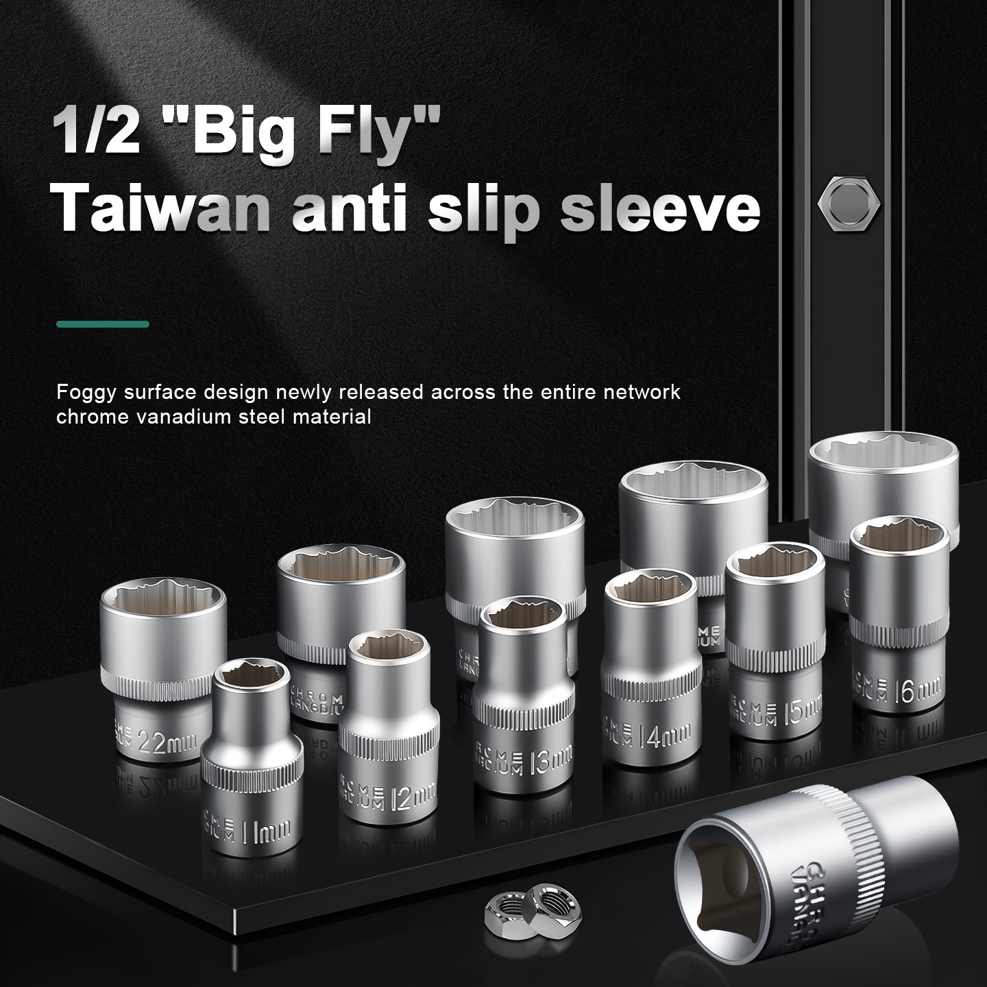 Explore 1/2 Big Fly Taiwan Anti slip Hexagonal Wrench Socket 8-32mm Ratchet Wrench Head Auto Repair