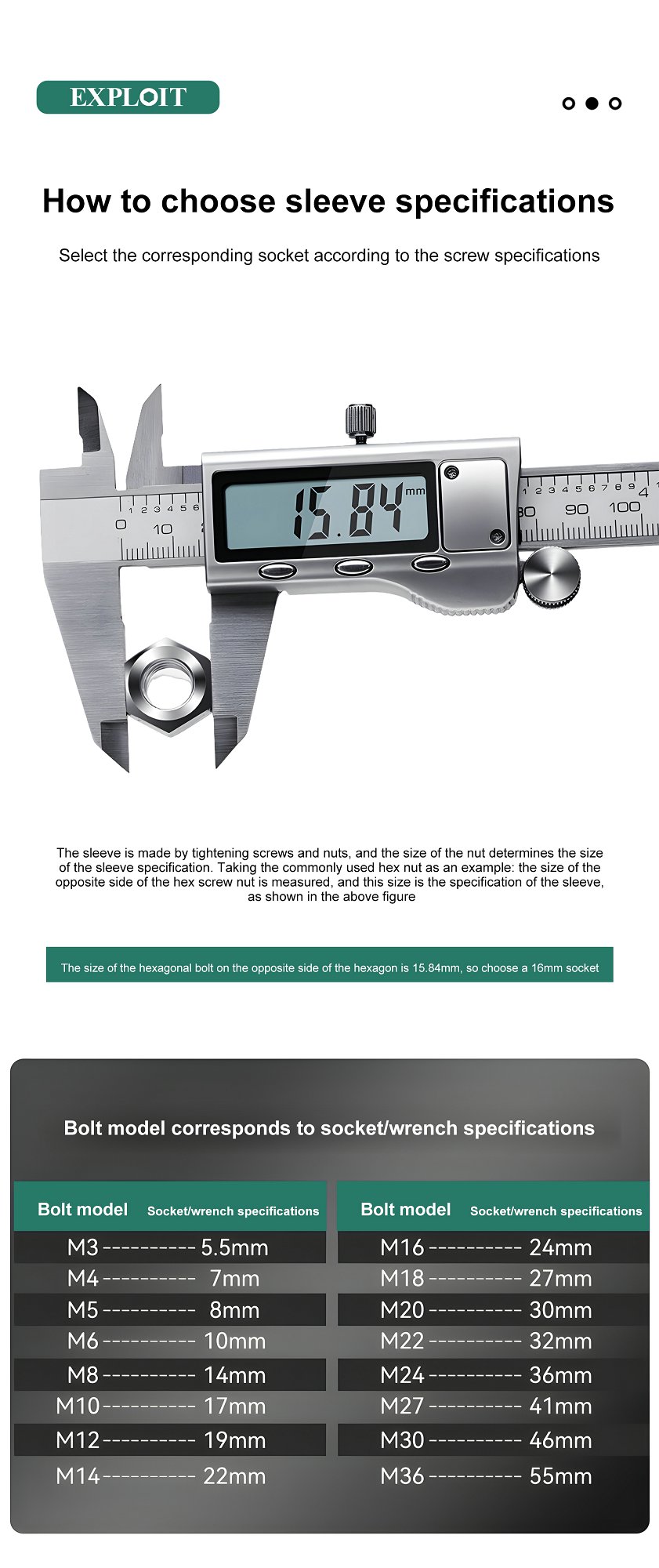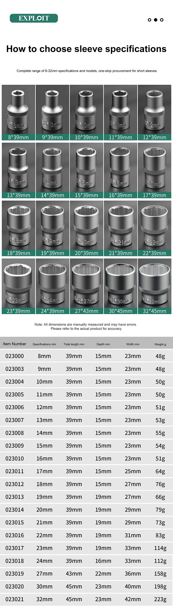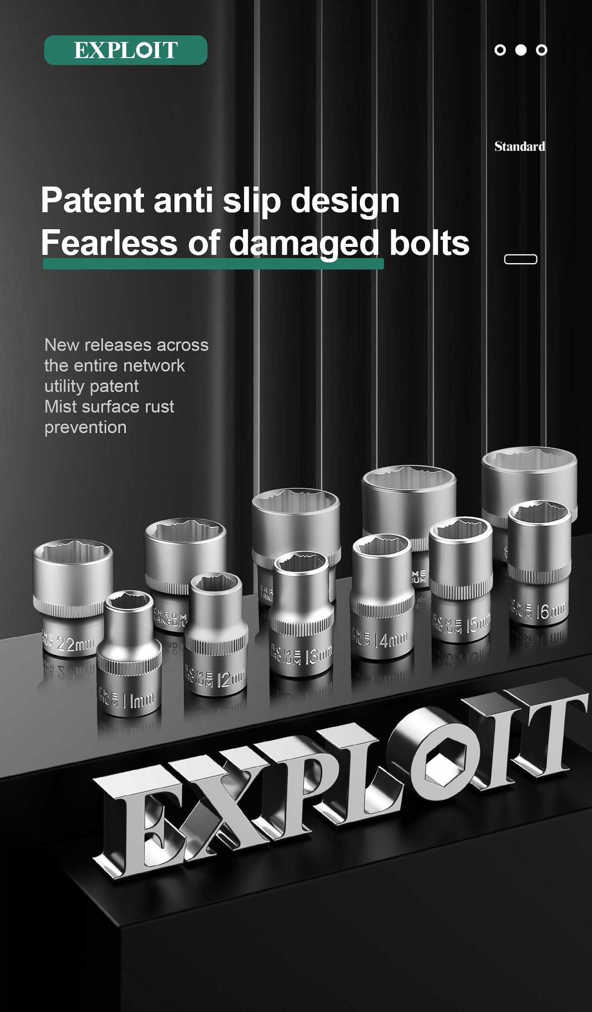 Explore 1/2 Big Fly Taiwan Anti slip Hexagonal Wrench Socket 8-32mm Ratchet Wrench Head Auto Repair