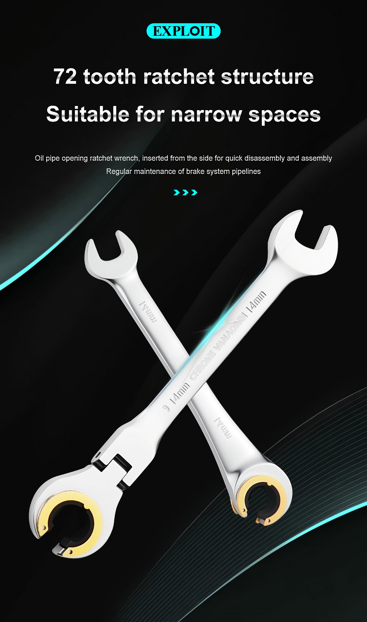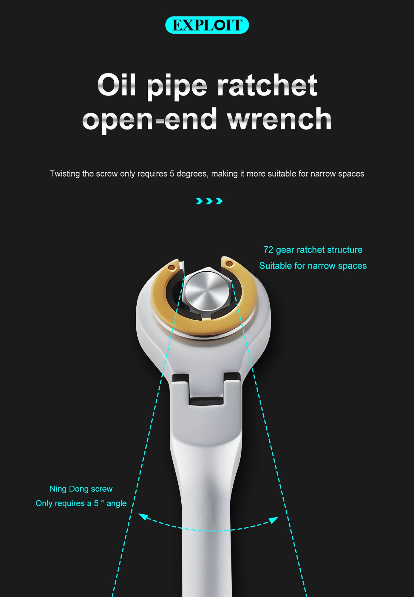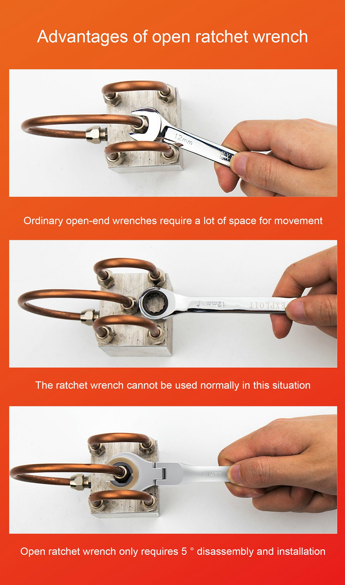 Explore the dual directional opening narrow space of the oil pipe ratchet wrench, which is easy to m