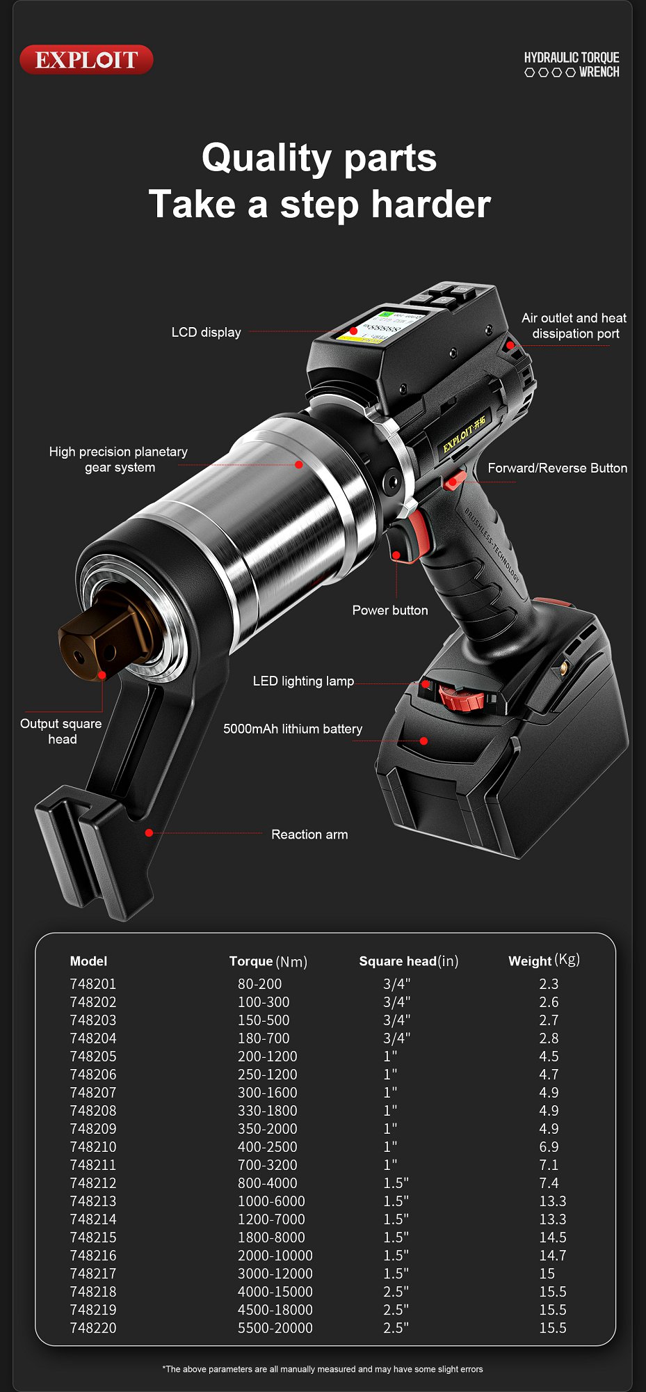 Develop heavy-duty electric hydraulic torque wrench with kilogram high precision adjustable 3000n100