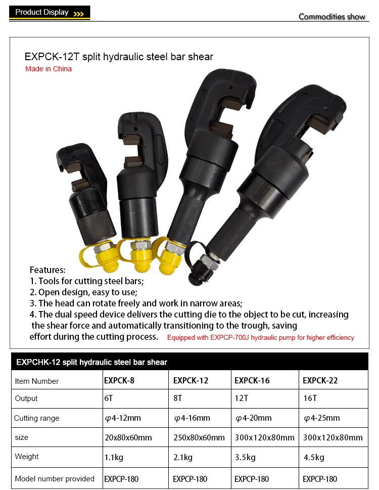 EXPLOIT开拓 分体式液压钢筋剪 钢筋切断工具 EXPCK-12