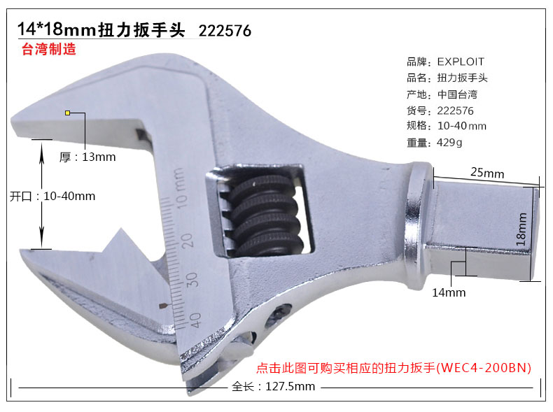 开拓 台湾制造 12x9/18x14mm扭力扳手头 可换头活动扳手头 222575
