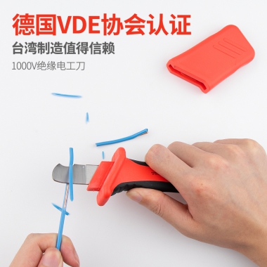 开拓台湾VDE认证1000V绝缘电工刀 剥线钳 割刀 电工绝缘专用工具