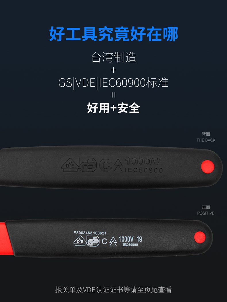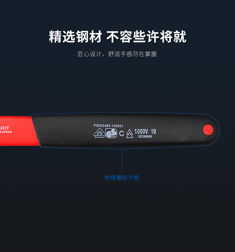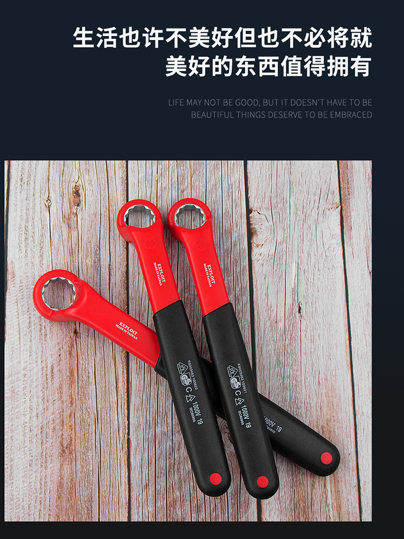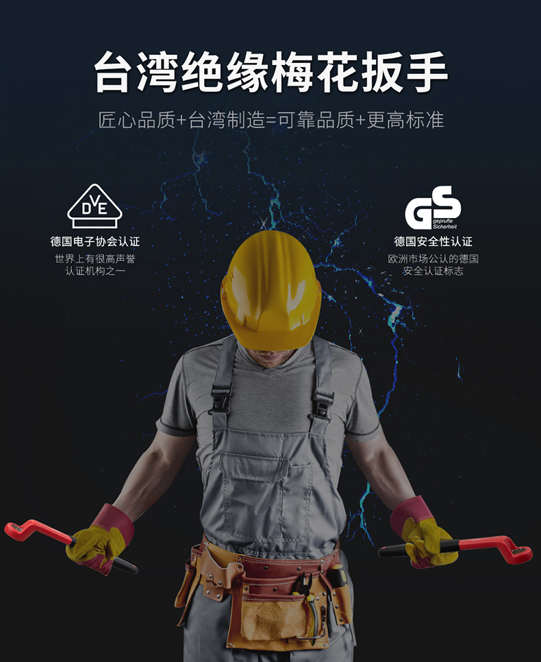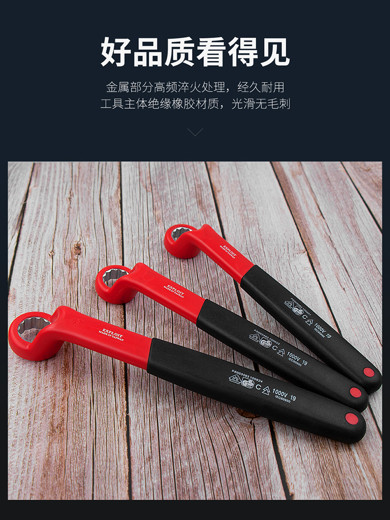 开拓台湾VDE认证1000V绝缘扳手8-24mm梅花 电工专用绝缘工具扳手