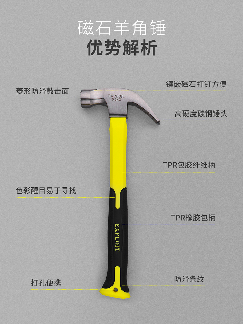 羊角锤八角锤圆头锤石工锤连体起钉迷你小铁锤子汽车生锤逃生安全