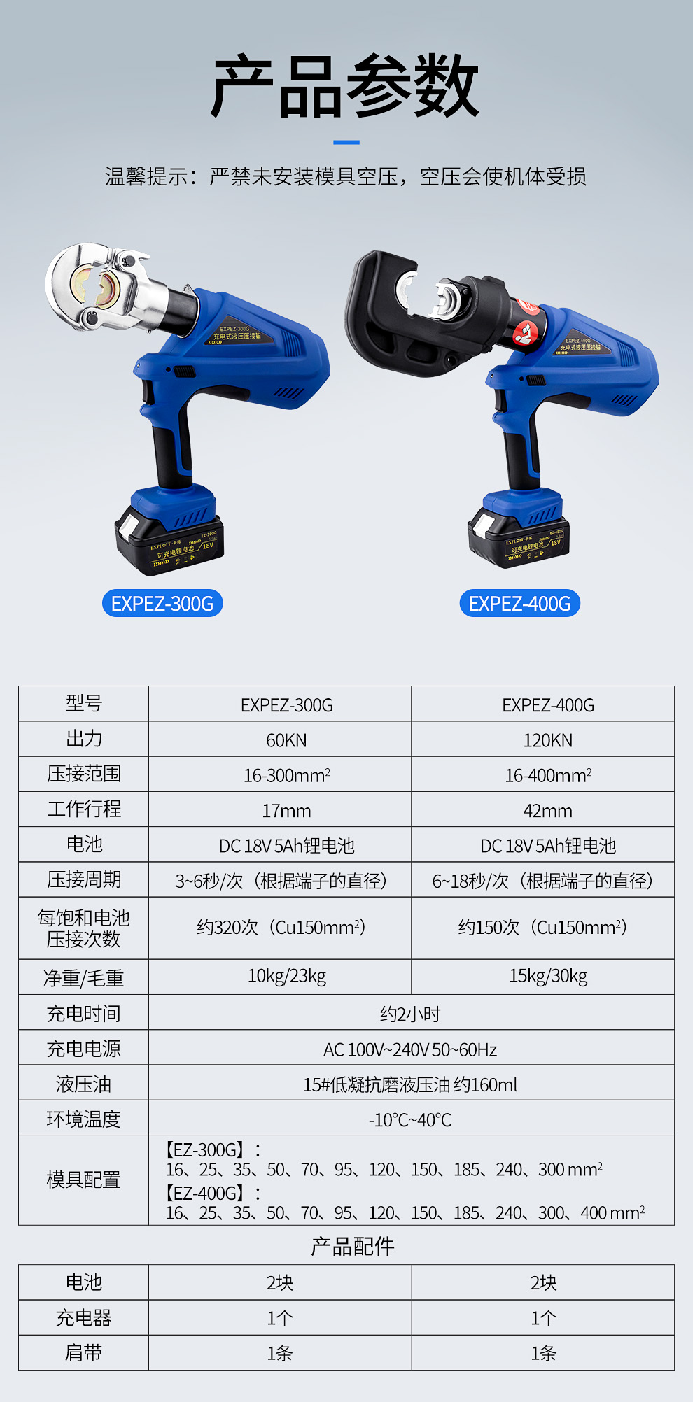 开拓电动液压钳电缆小型压线钳电工专用锂电充电式端子钳钳子工具