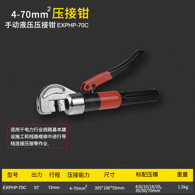 开拓4-300mm2手动省力快速液压压接钳冷压端子钳压线钳 EXPHP-70C