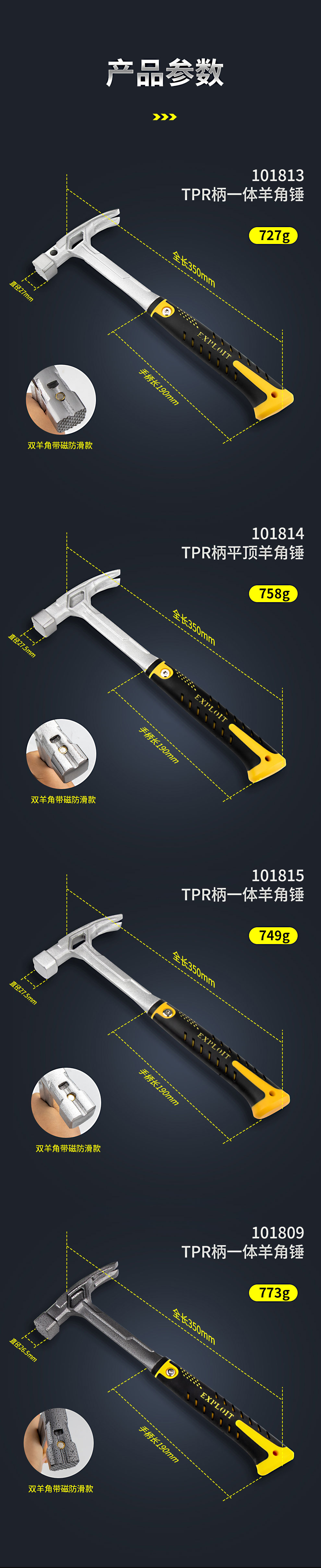 开拓羊角锤高碳钢一体成型带磁铁家用电工木工专用榔头铁锤锤子
