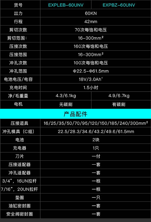 三合一可换头多功能充电式电动压接钳/电缆剪/冲孔机 EXPBZ-60UNV