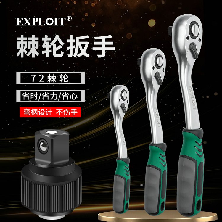 快速棘轮套筒扳手小飞中飞大飞双向万能72齿工业级外六角套管扳手