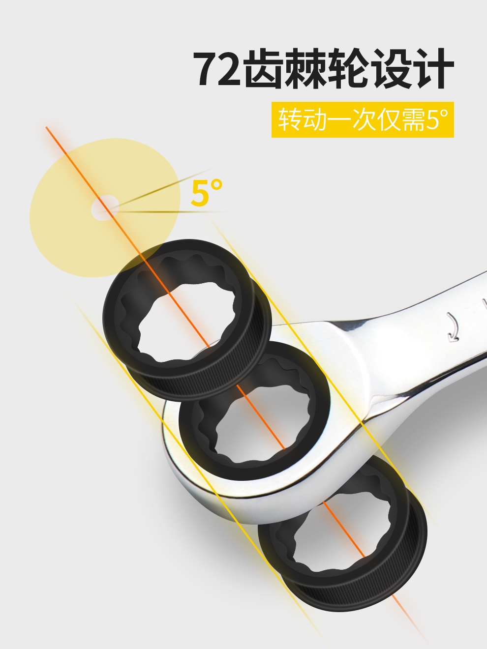 棘轮快速扳手两用梅花开口快扳72齿加长省力工业级10mm13号17套装