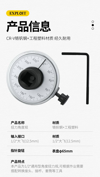 开拓扭力角度规指针式大飞1/2工业级扭矩公斤扳手表盘测试仪计