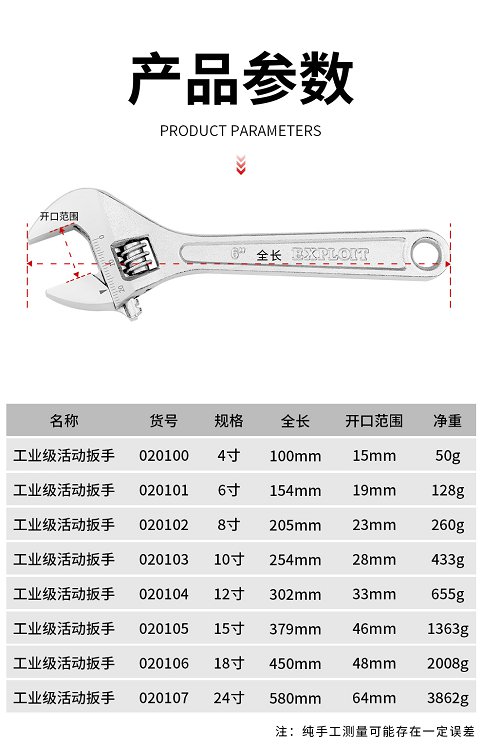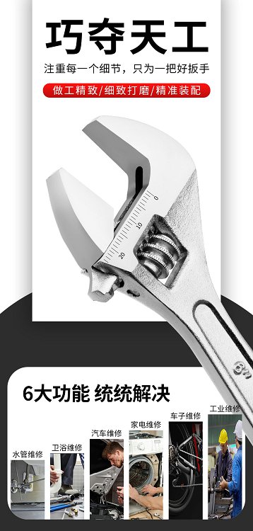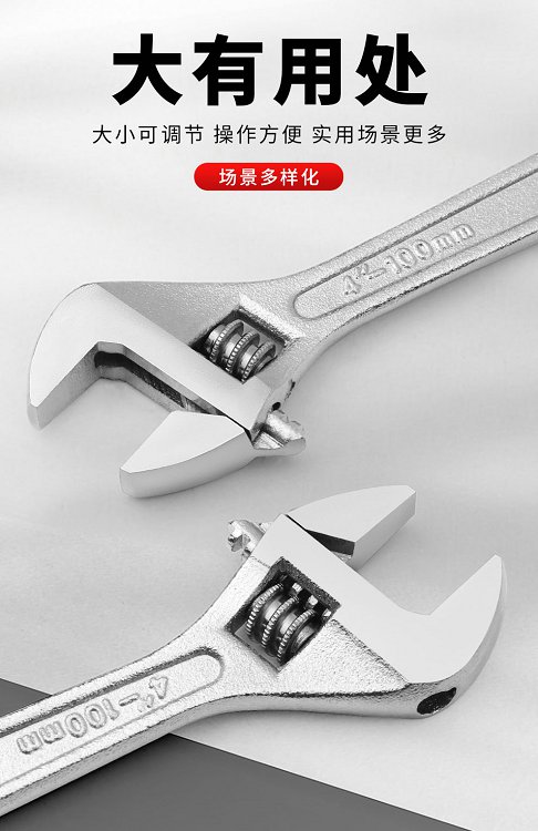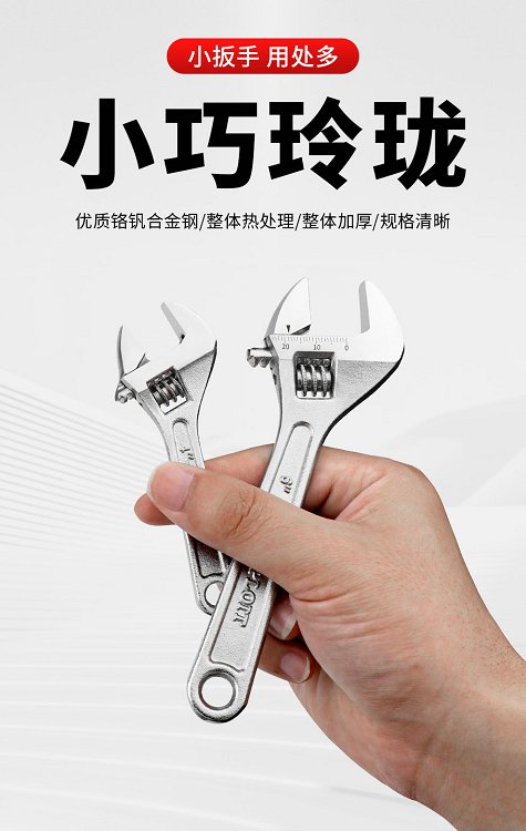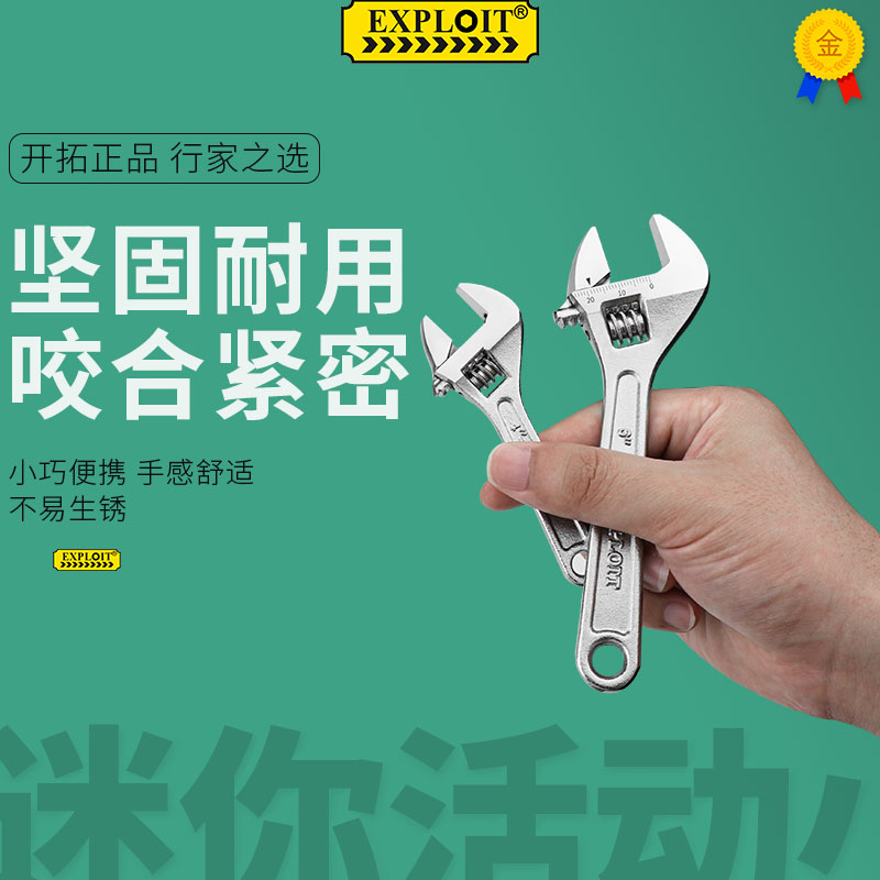 开拓活动扳手万能活口多功能板手4寸6寸迷你小型扳手卫浴管钳工具