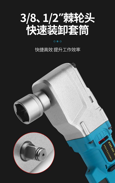 开拓90度直角电动棘轮扳手角向拐角锂电无刷电机中飞拐角器大扭力