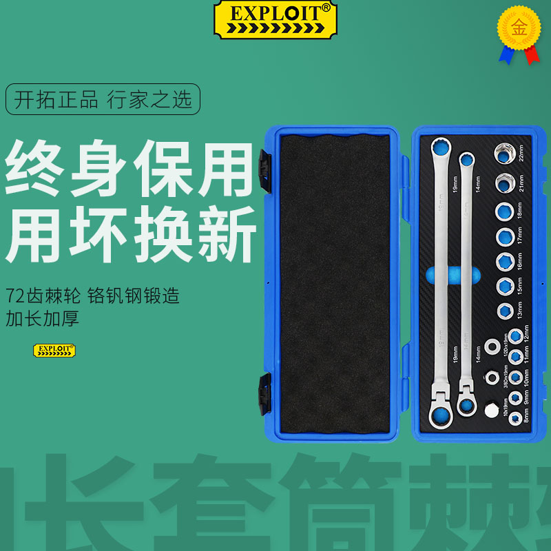 开拓活动头棘轮套筒扳手组合工具套装加长梅花双头快速汽修呆扳手