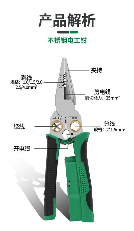 开拓剥线钳电工专用工具多功能剪切接线钳电线电缆测电扒拉线钳子