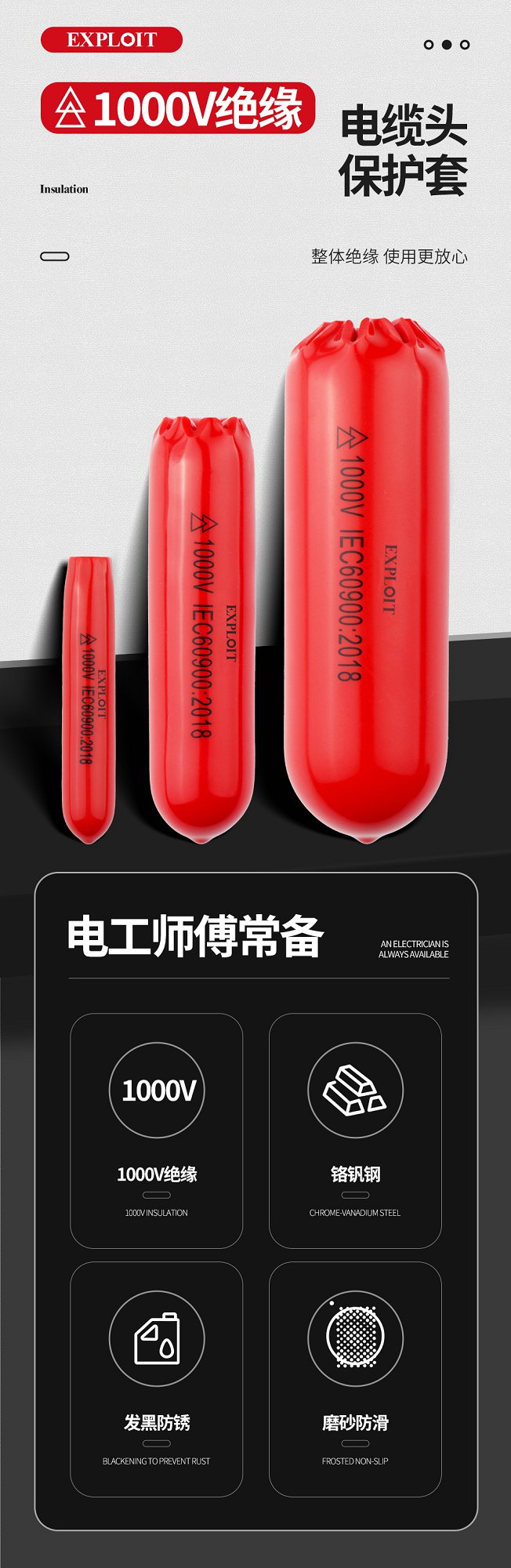 开拓电缆头线缆保护套VDE认证1000V高压电线终端头绝缘套管封帽