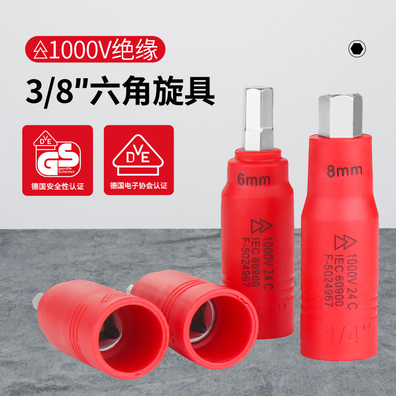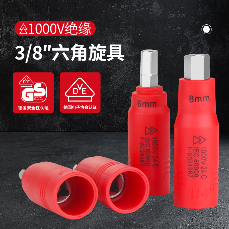 开拓内六角扳手套筒1000V绝缘耐高压1/4小飞压批内六方旋具套筒
