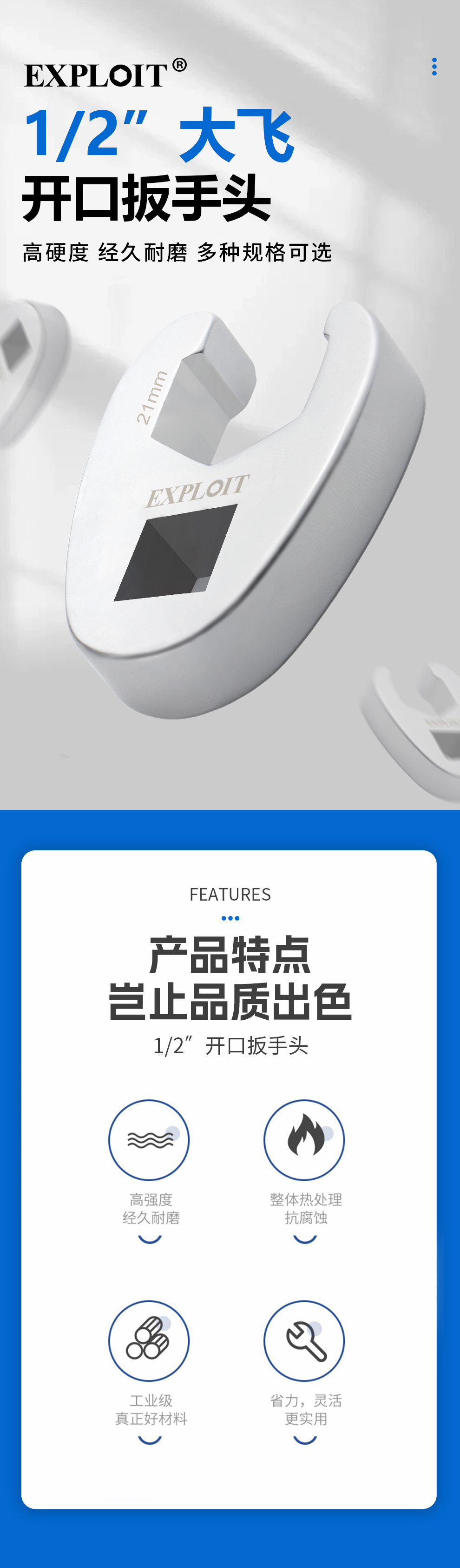 开拓1/2大飞扭力扳手开口油管头棘轮扳手配件力矩插口转接插件