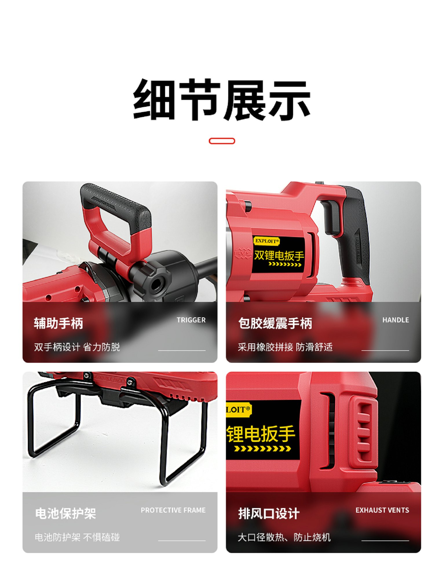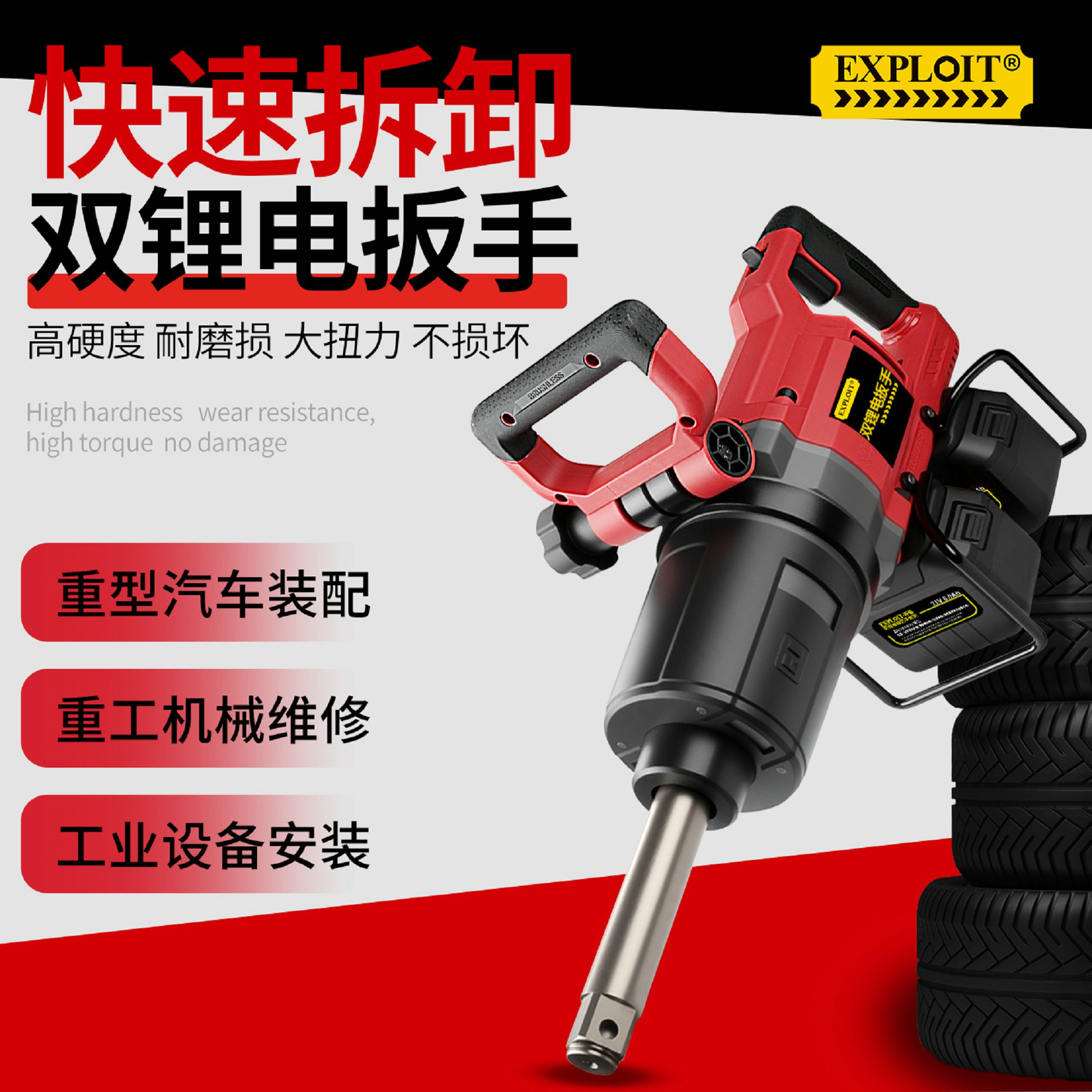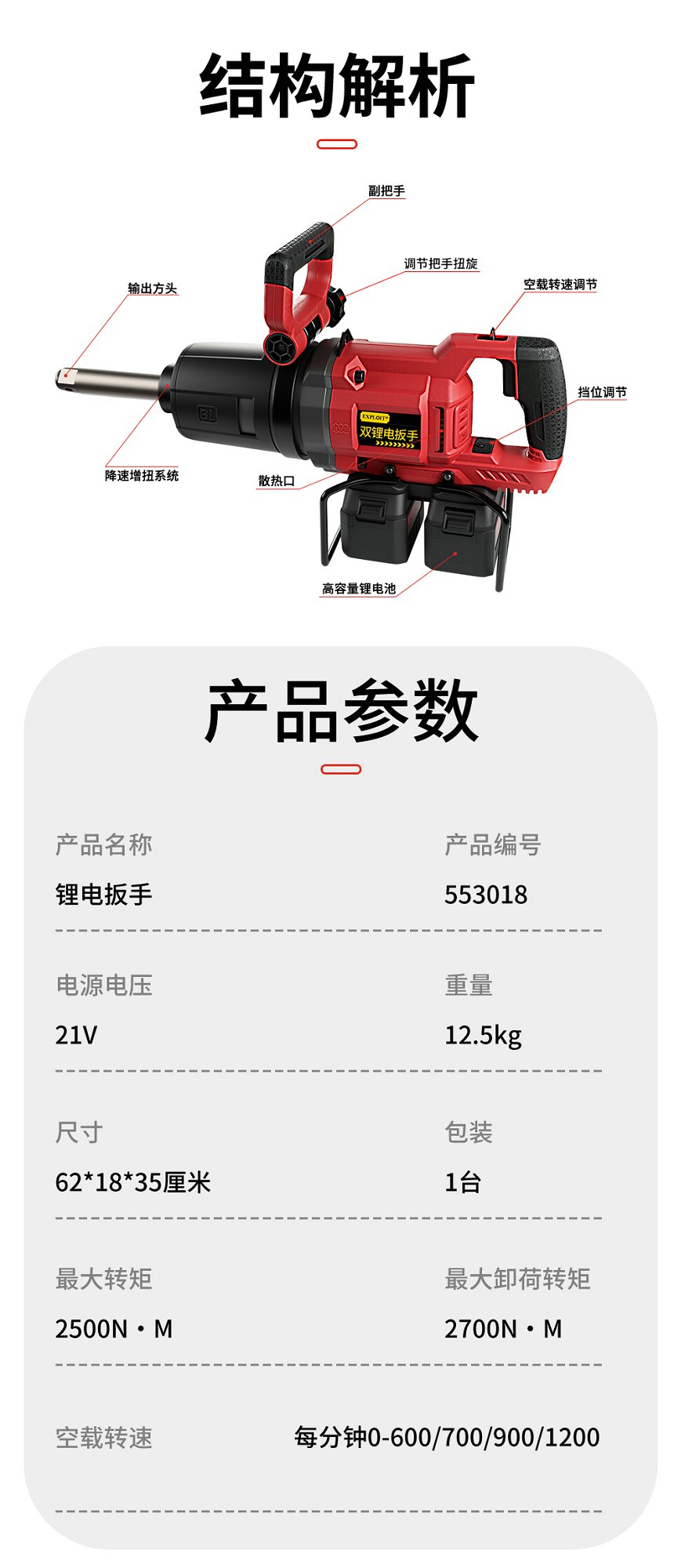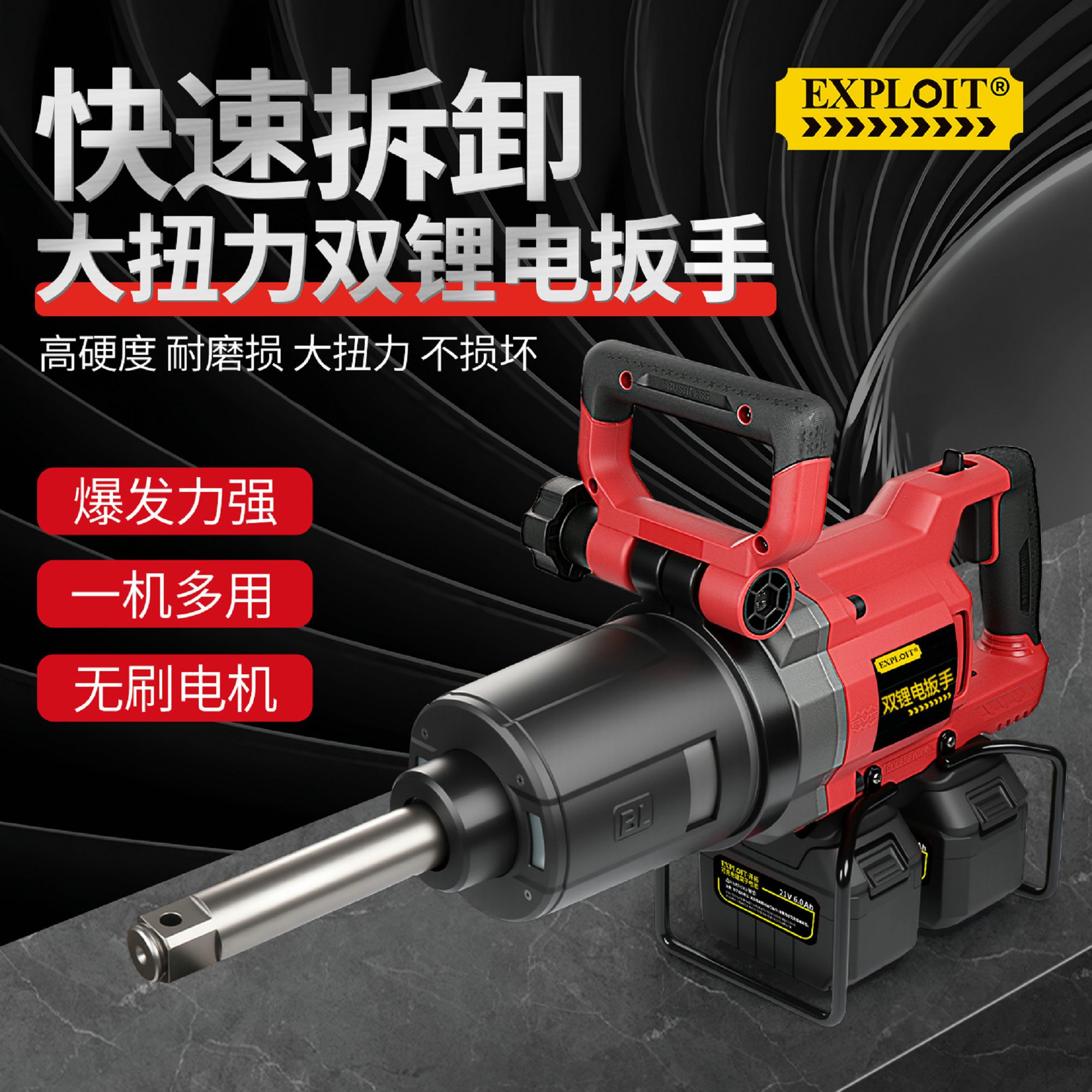 开拓双锂电大扭力冲击重型扳手21V大功率大容量锂电池维修工具