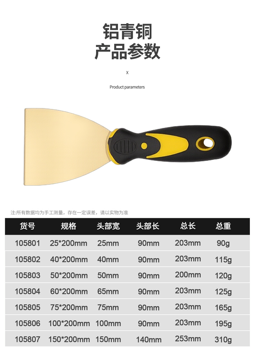 开拓防爆工具腻子刀批灰刀铜铲刀油灰刀刮刀铝青铜无火花泥子刀