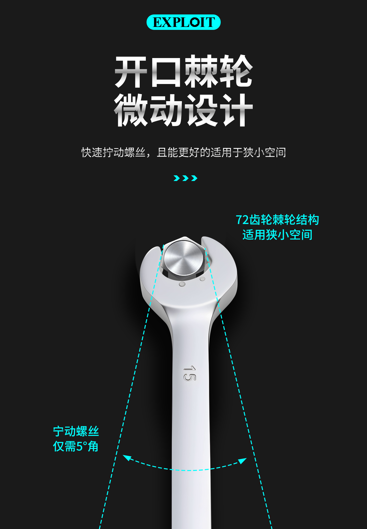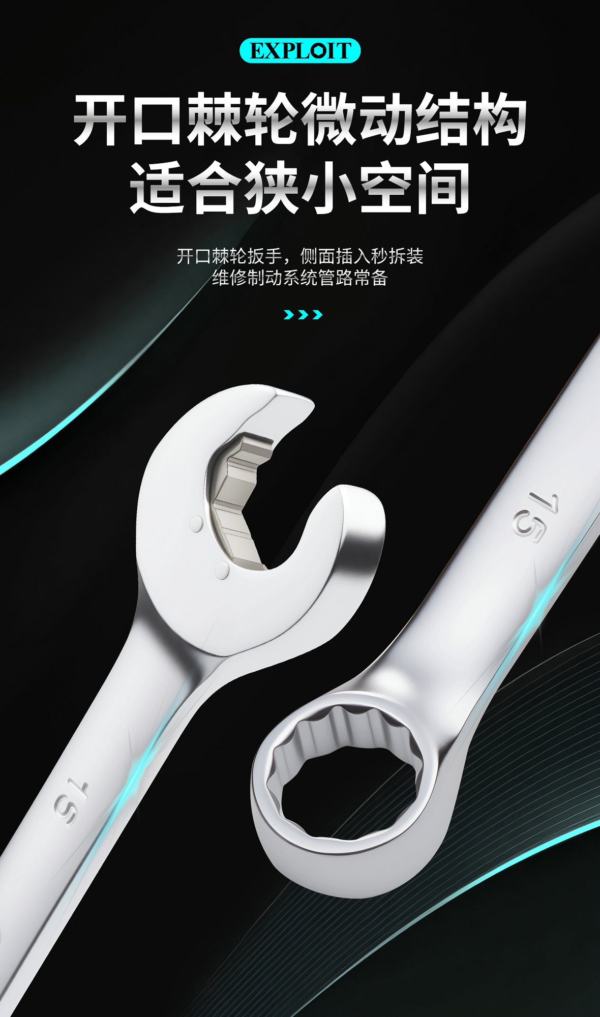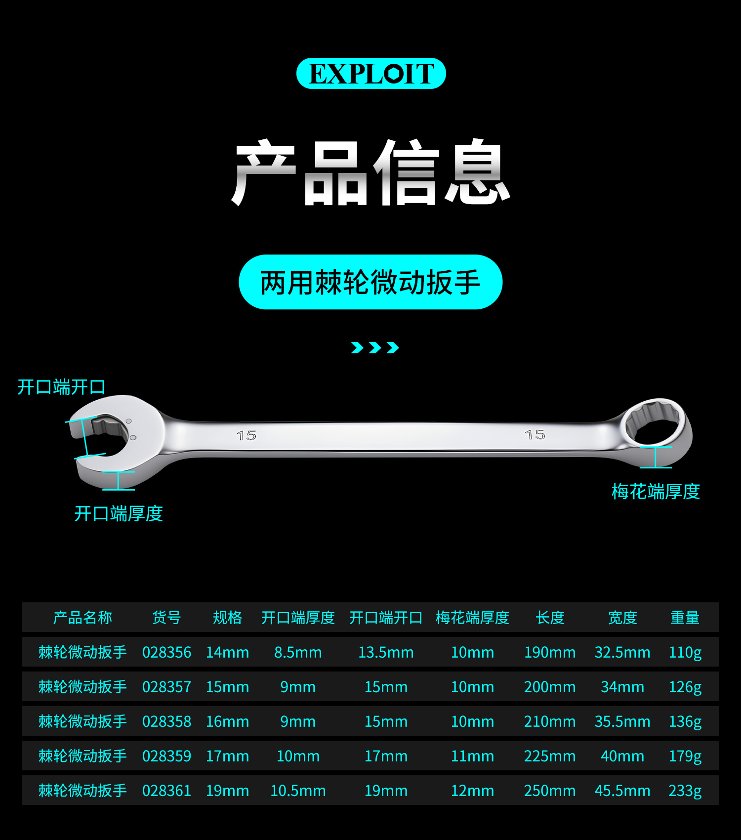 开拓微动棘轮扳手双头开口梅花两用呆板子14-19mm汽修专用工具