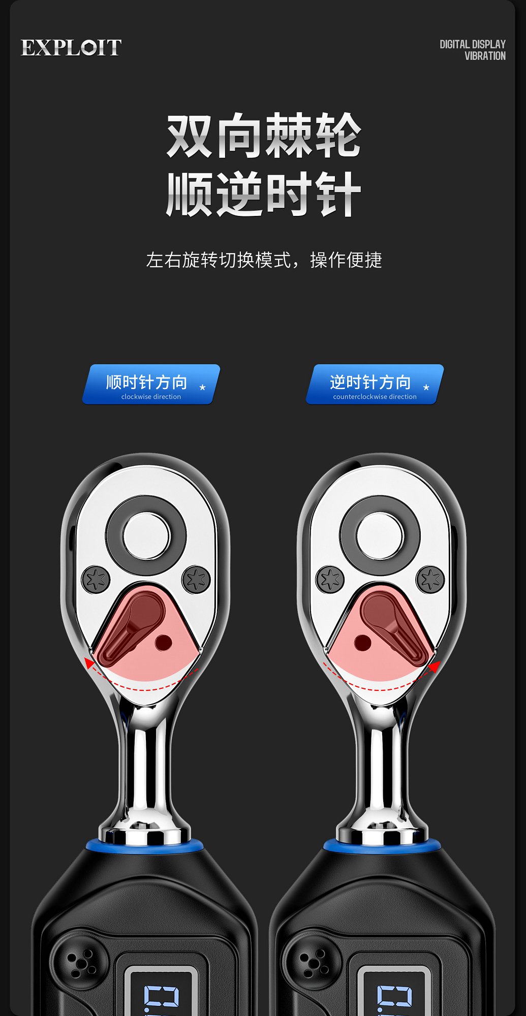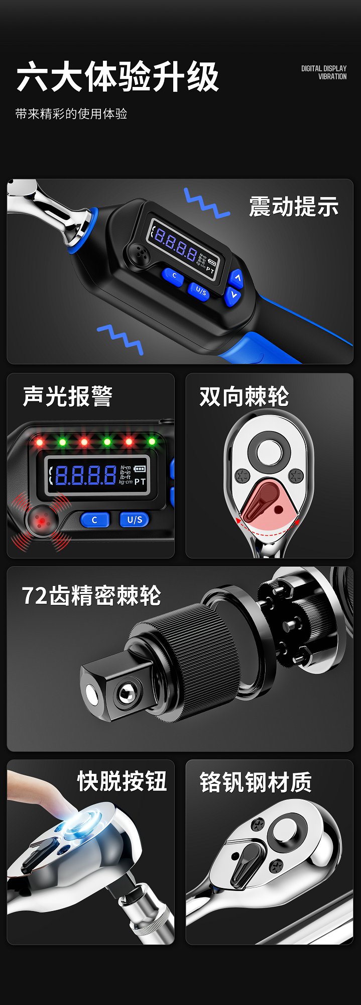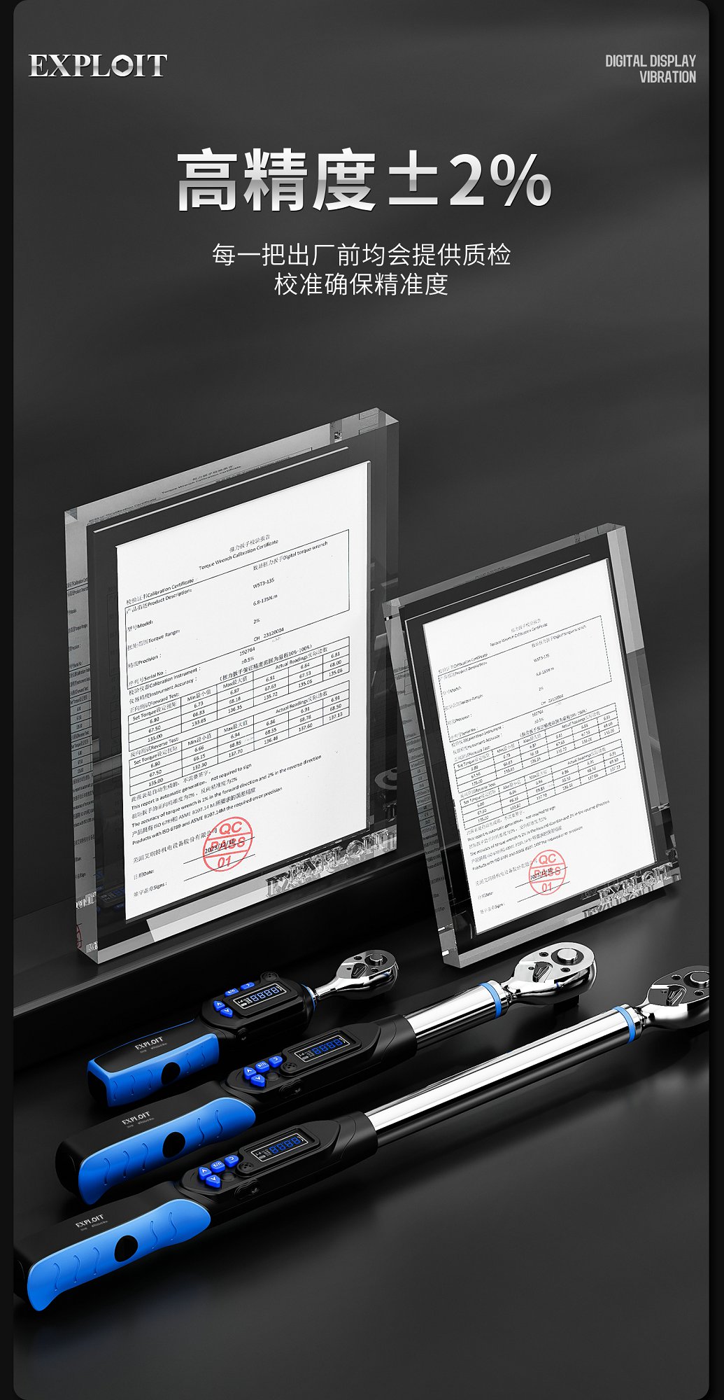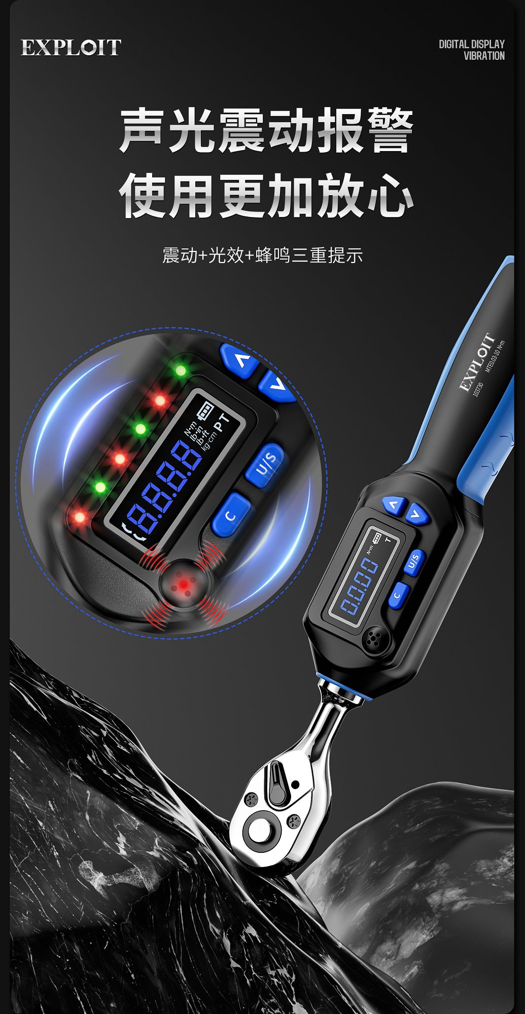 开拓电子数显扭力扳手可调式高精度震动声光三重报警汽修专用工具