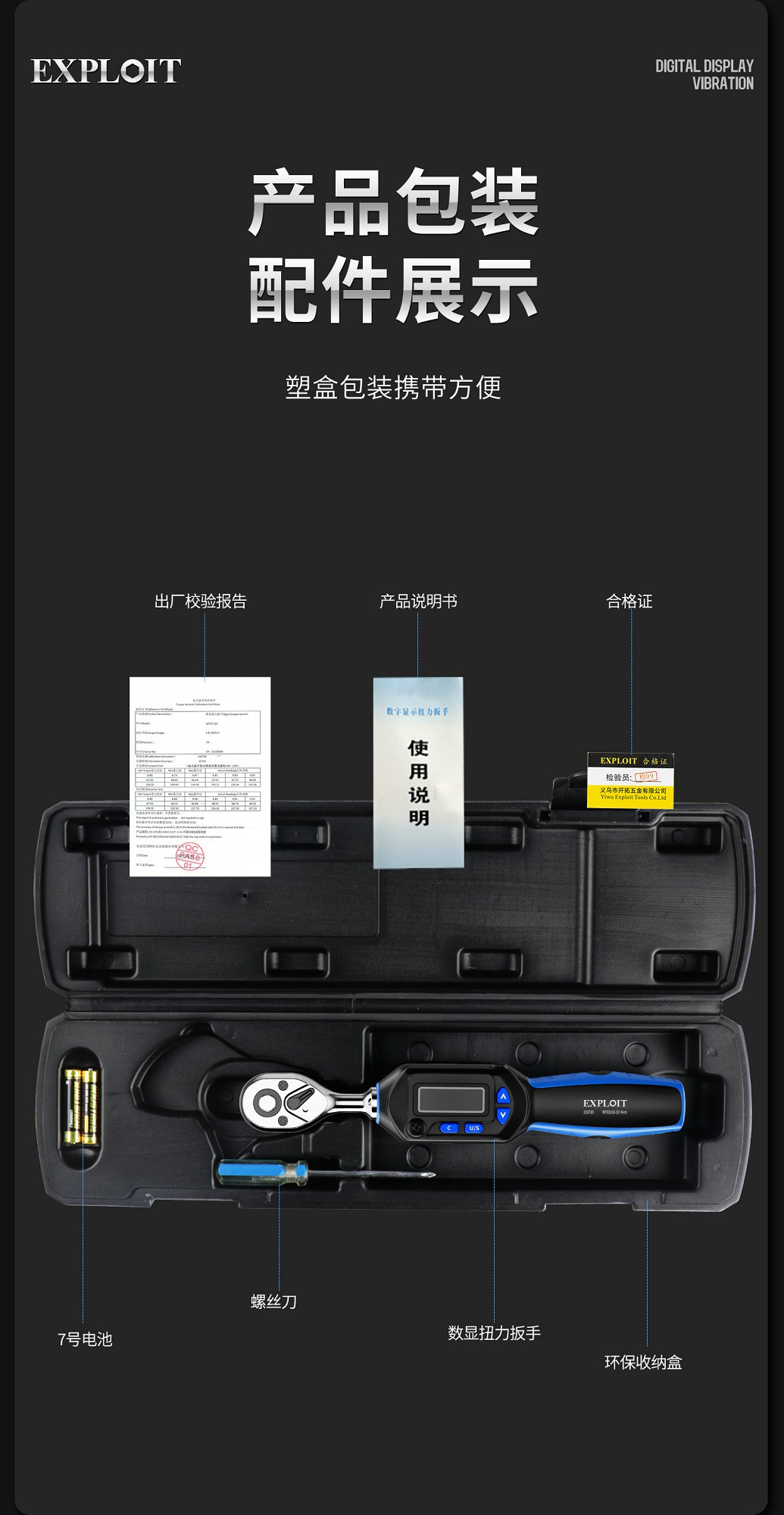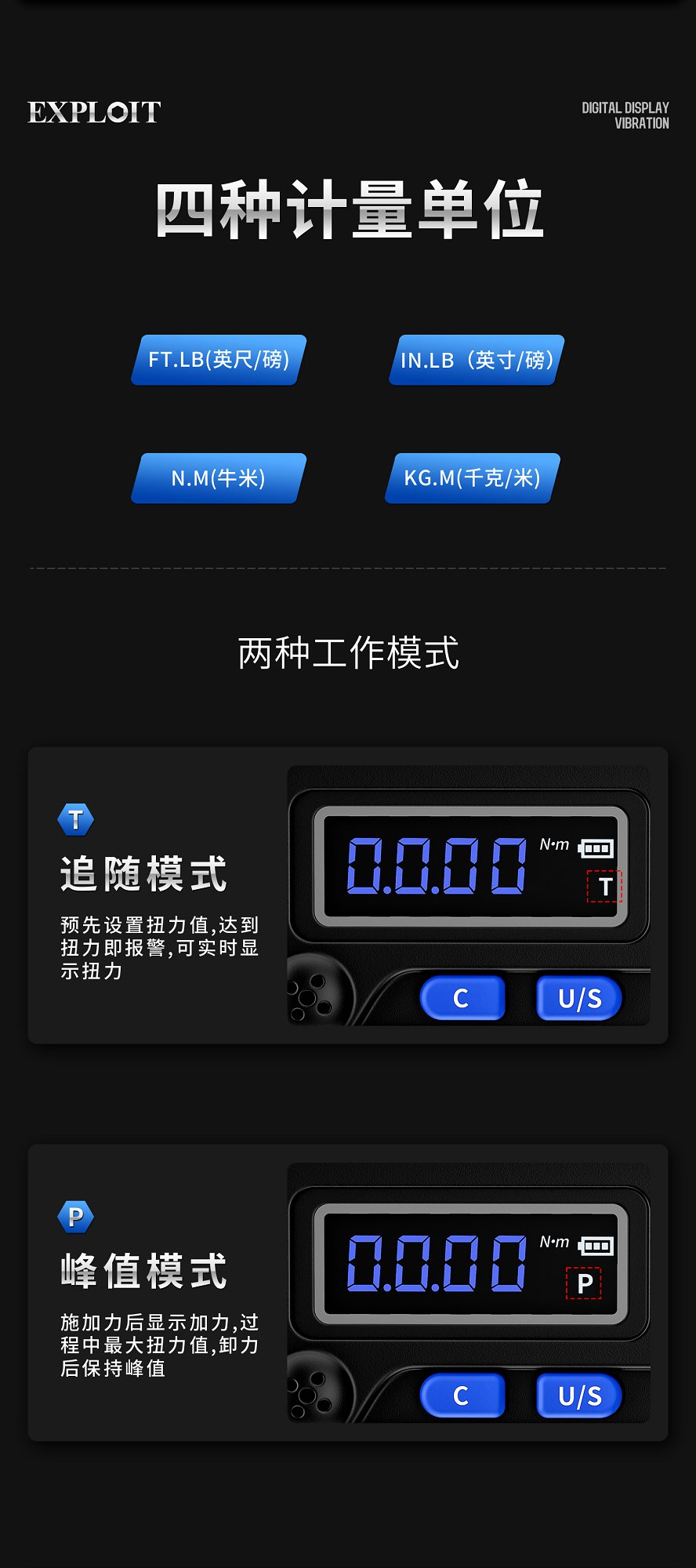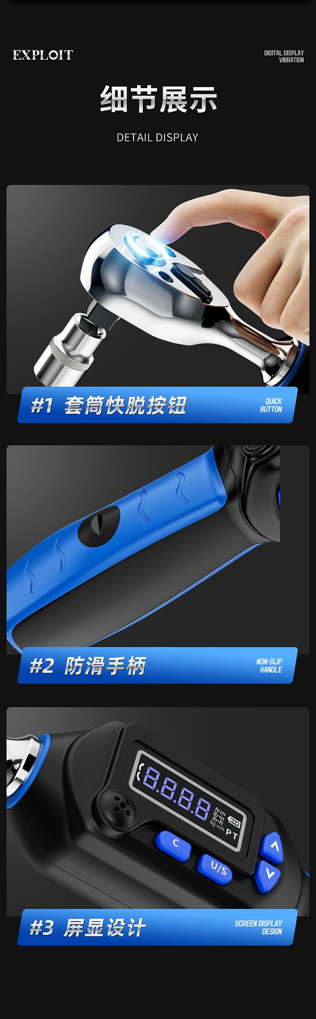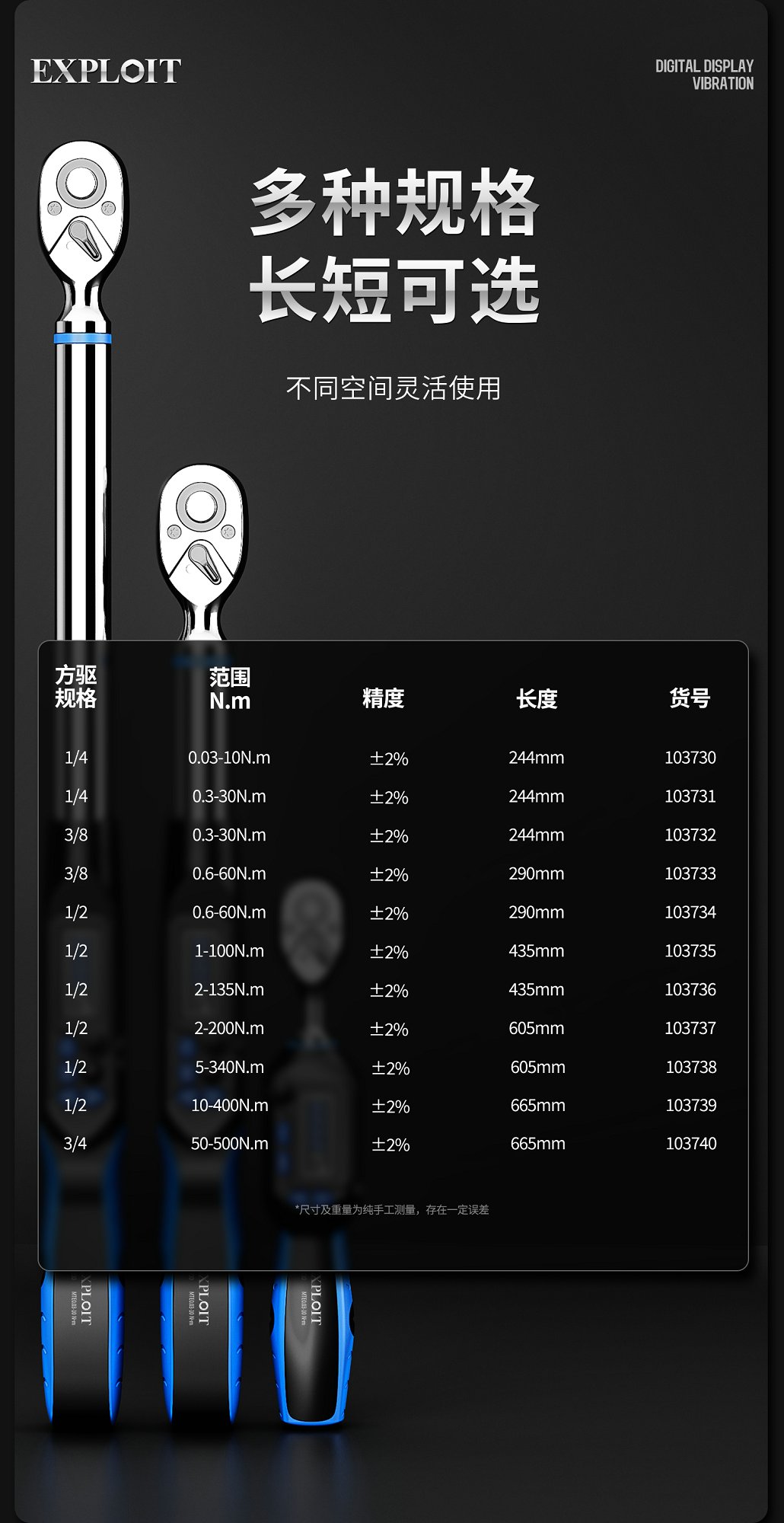 开拓电子数显扭力扳手可调式高精度震动声光三重报警汽修专用工具