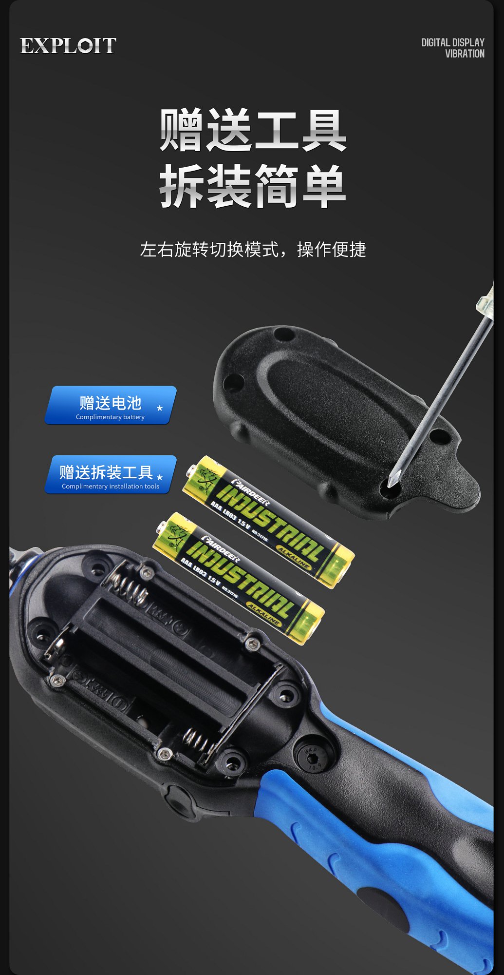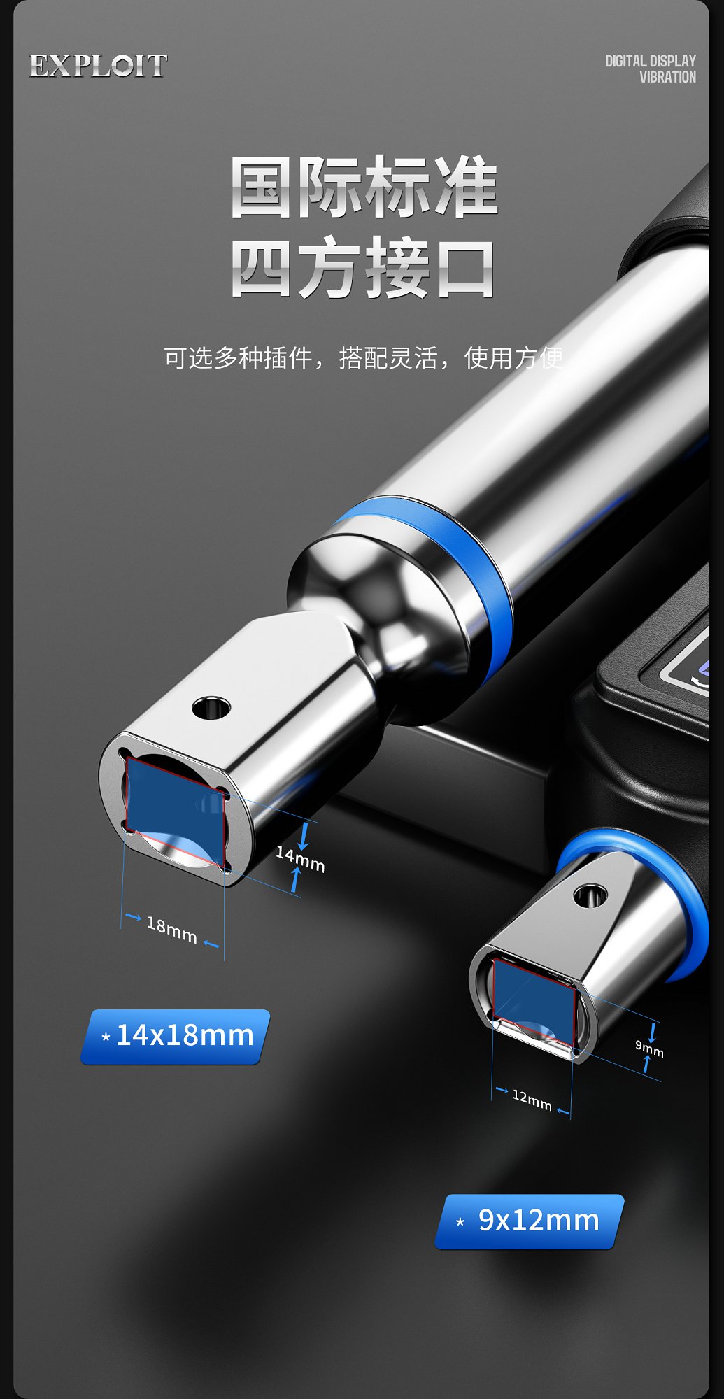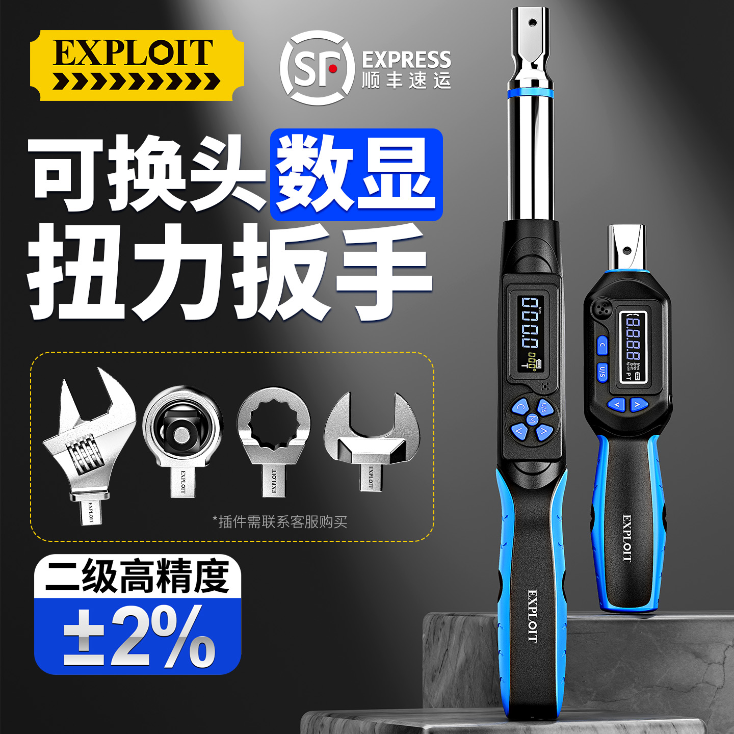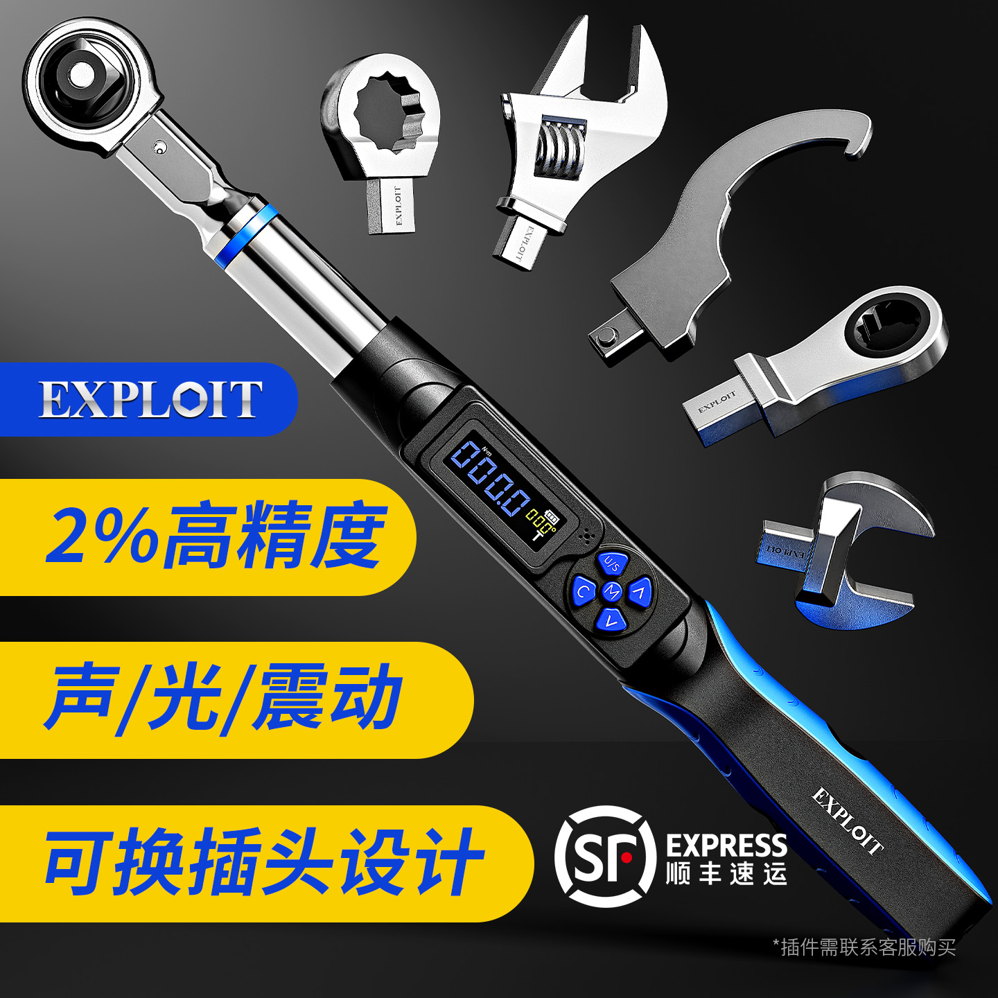 开拓可换头数显扭力扳手可调高精度震动声光三重报警汽修专用工具