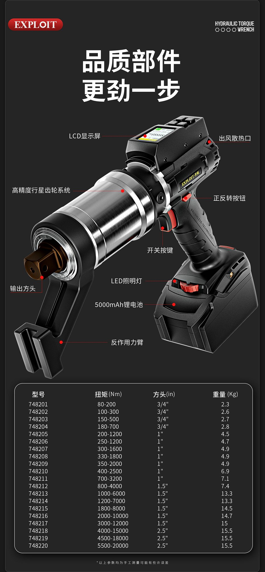 开拓重型电动液压扭力扳手公斤高精度可调式3000n1000扭矩800牛