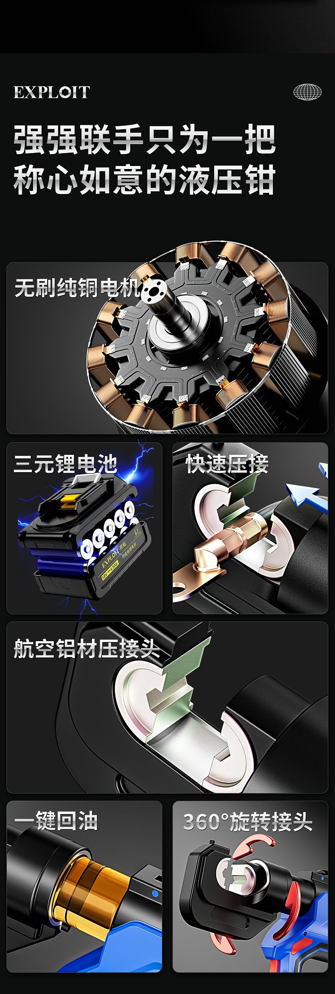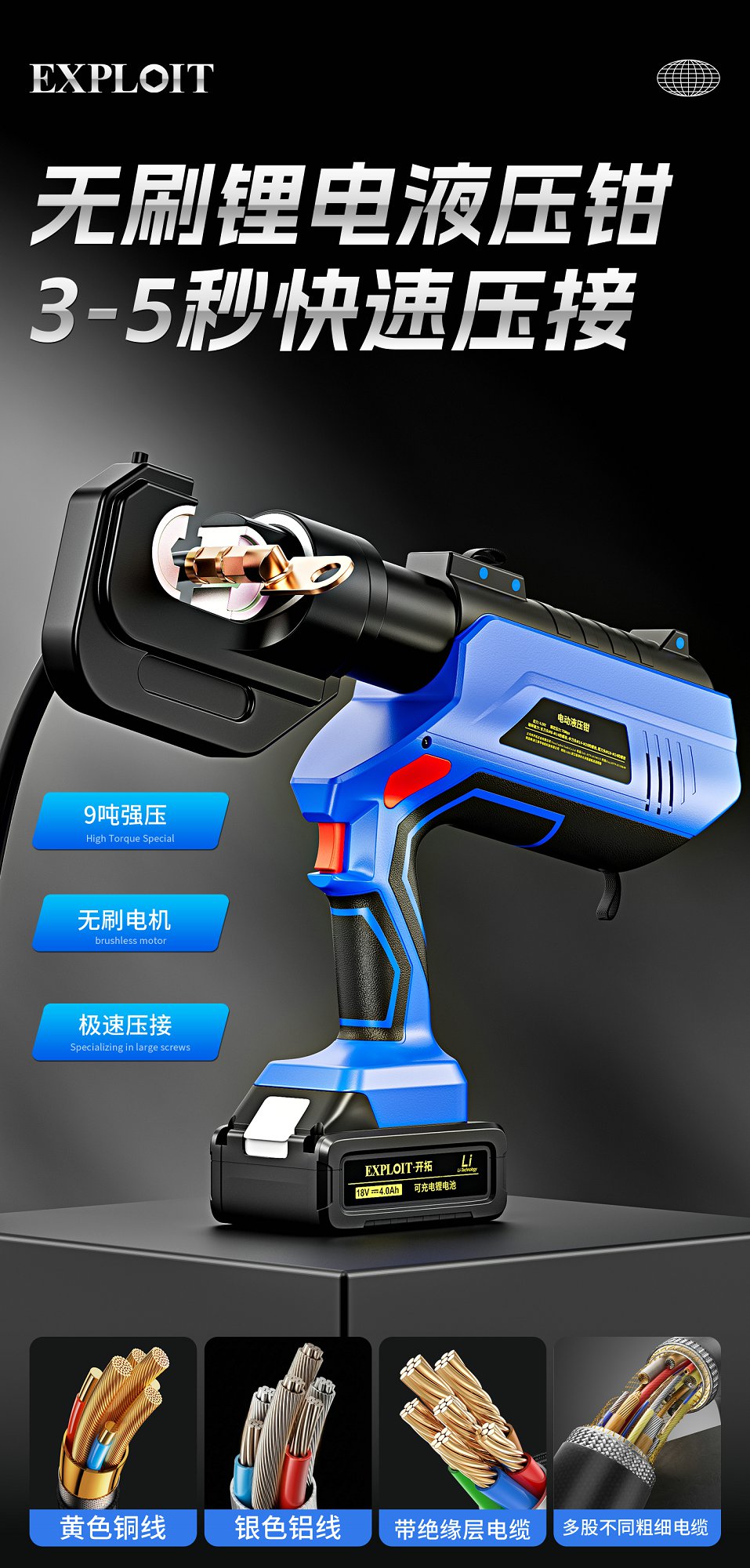 开拓锂电液压压接钳EZ-400充电式压接工具端子钳电缆剪液压铜鼻子