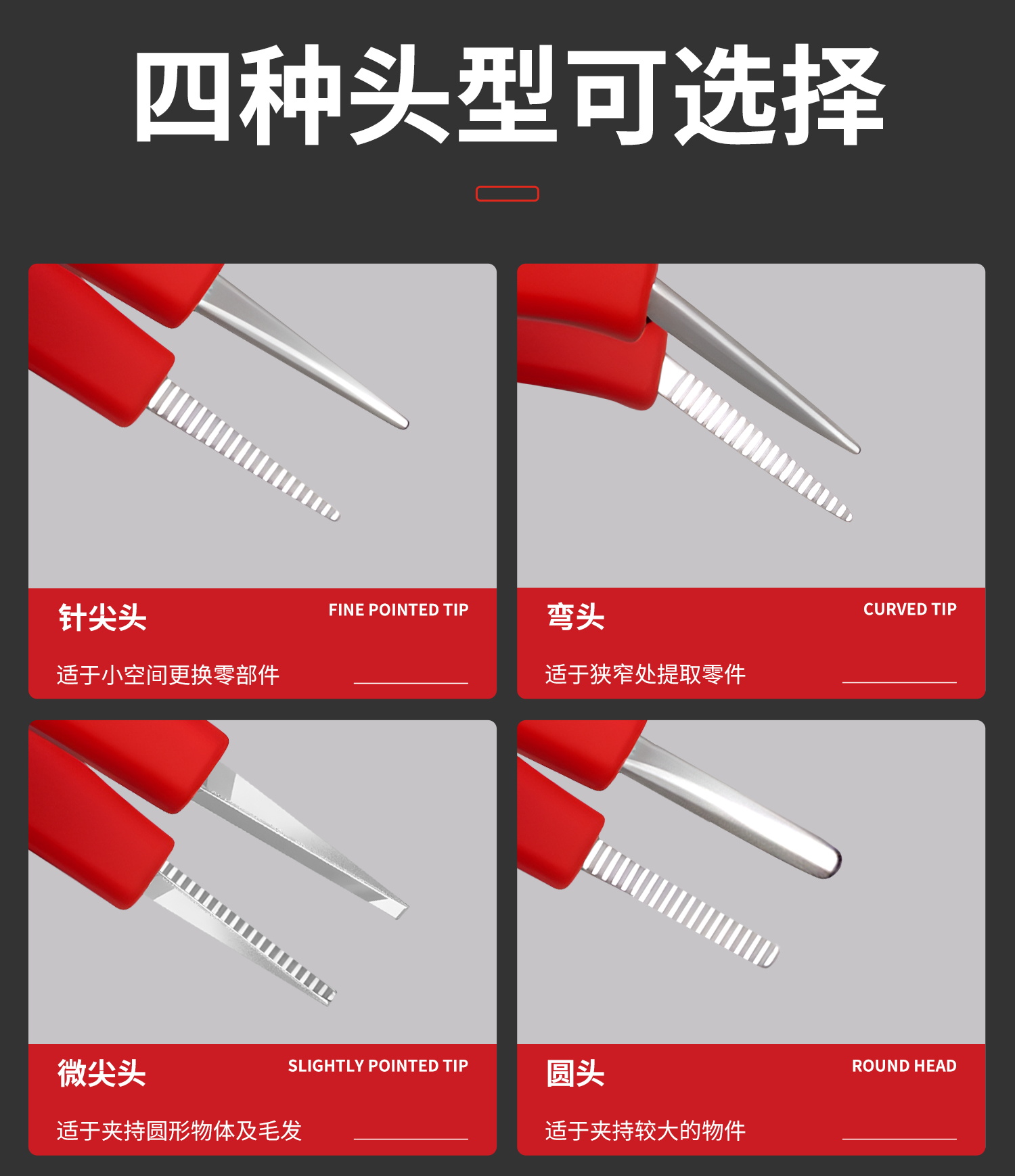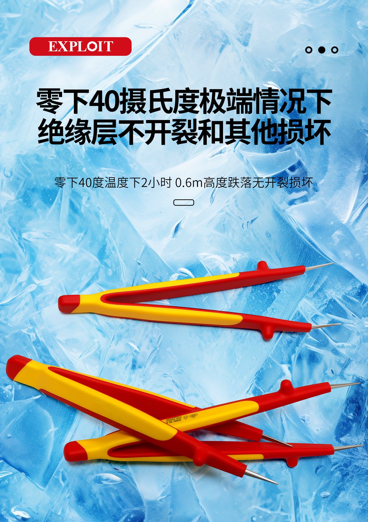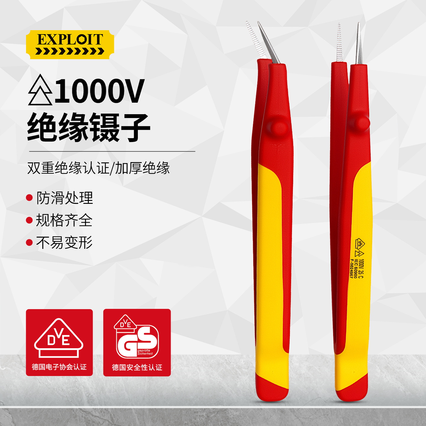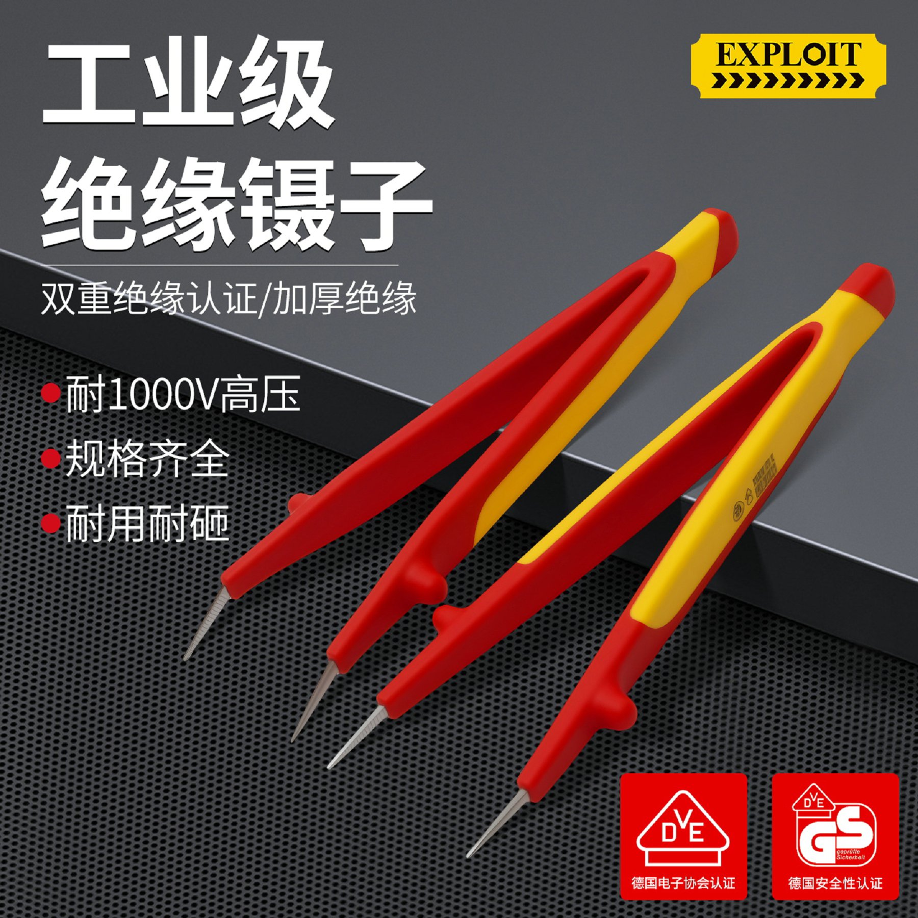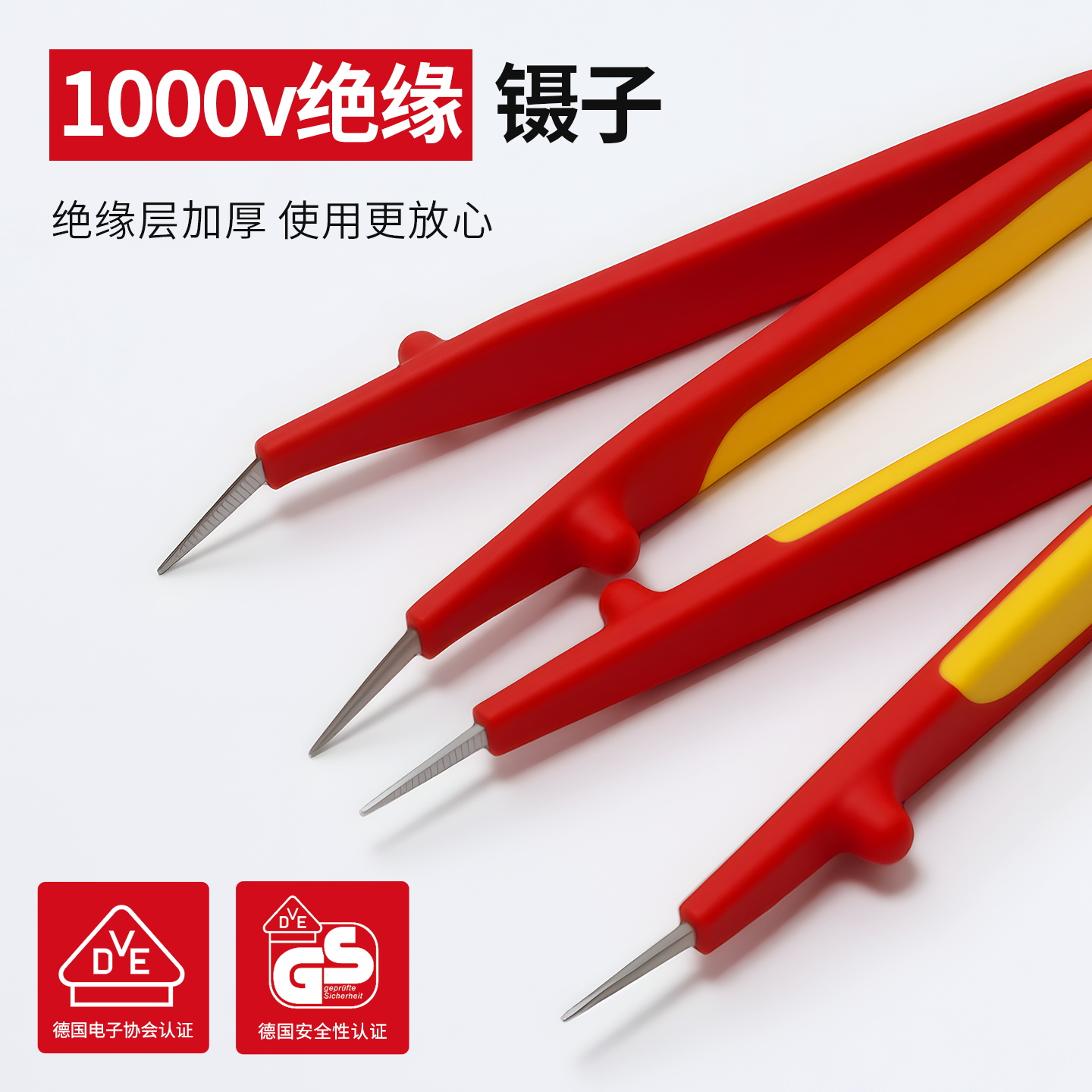 开拓绝缘1000V耐高压304不锈钢材质电工维修专用弯尖微针圆尖镊子