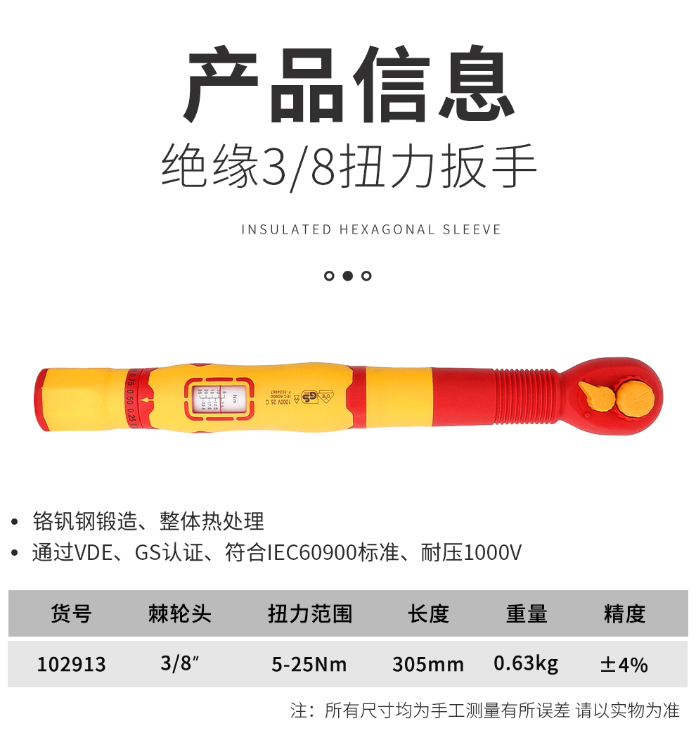 开拓绝缘扭力扳手VDE认证1000V耐高压可视窗力矩扳手电工维修工具