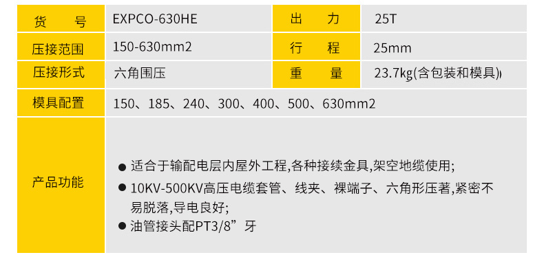 开拓 150-630mm2分体式液压钳 液压压线钳压接钳 EXPCO-630HE