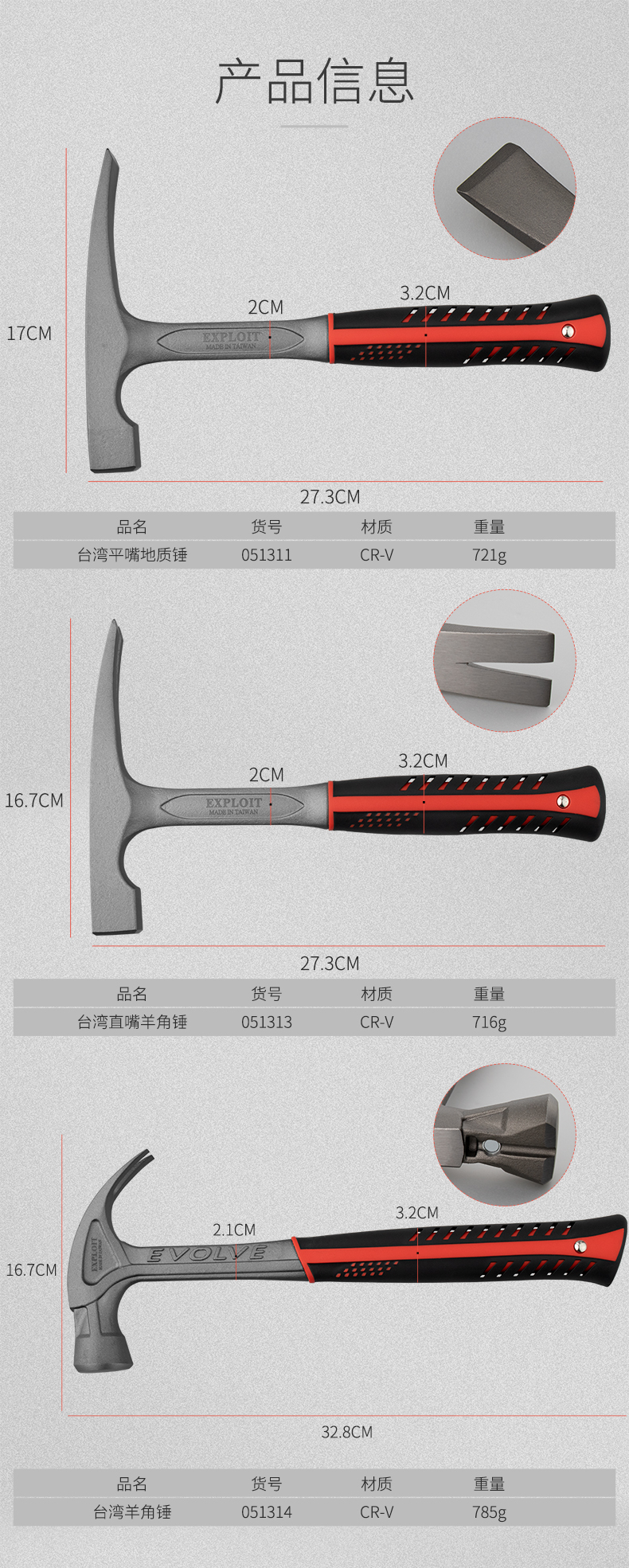 开拓 台湾制造 采矿锤地质锤地质勘探锤 地矿勘探工具 051310