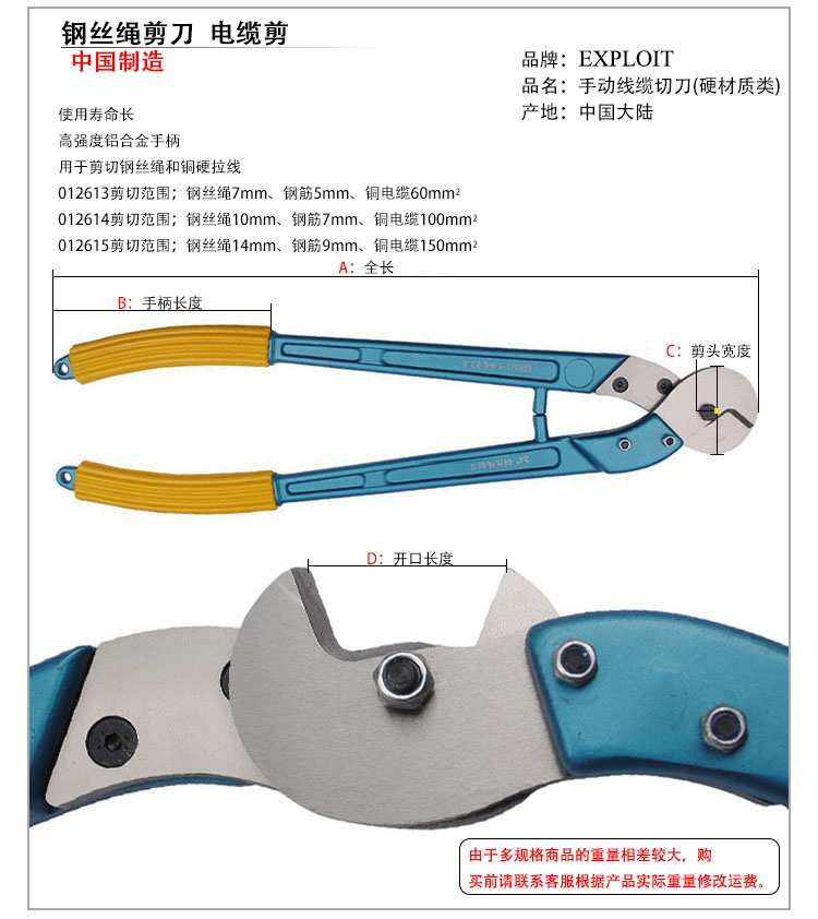 开拓 手动电缆剪 10mm钢丝绳剪刀 线缆剪 电力工具 012615