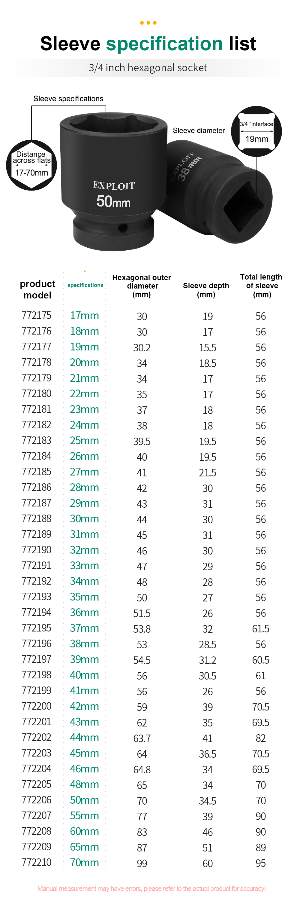 Develop 3/4 heavy-duty stroke cannon socket head thickened 17-70mm 36 pneumatic electric wrench spec