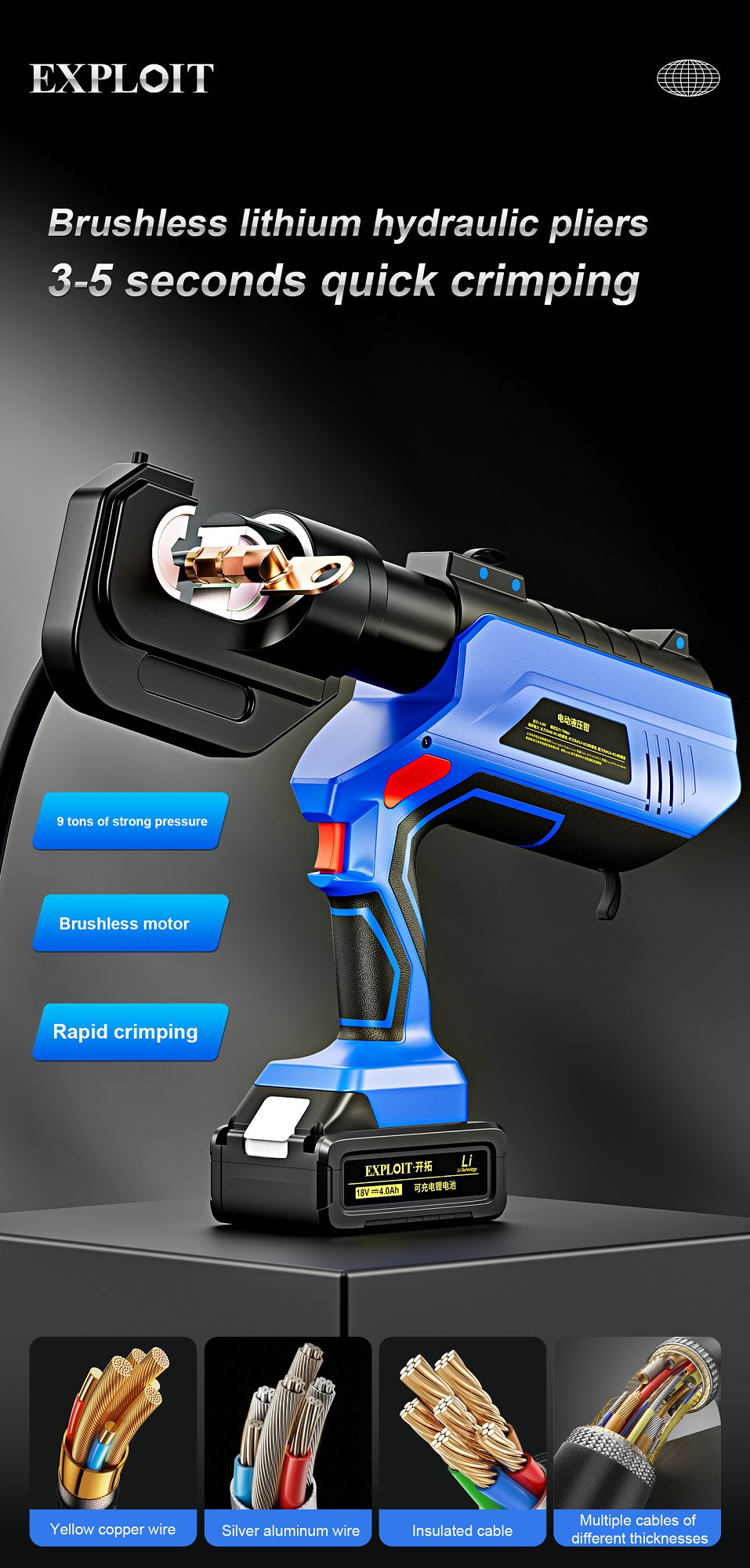 Developing lithium hydraulic crimping pliers EZ-400 rechargeable crimping tool terminal pliers cable